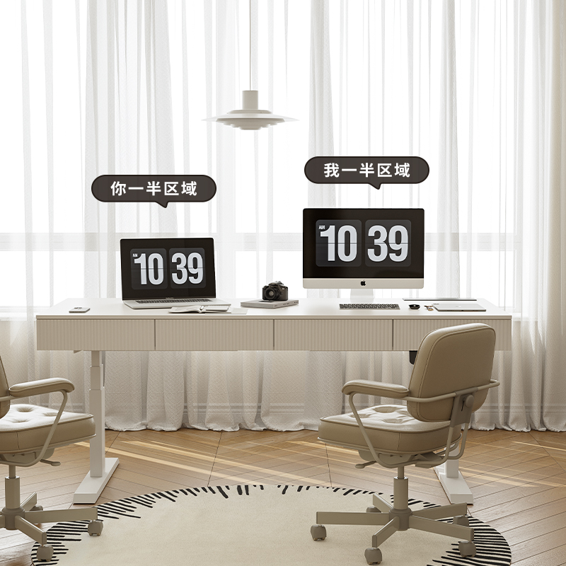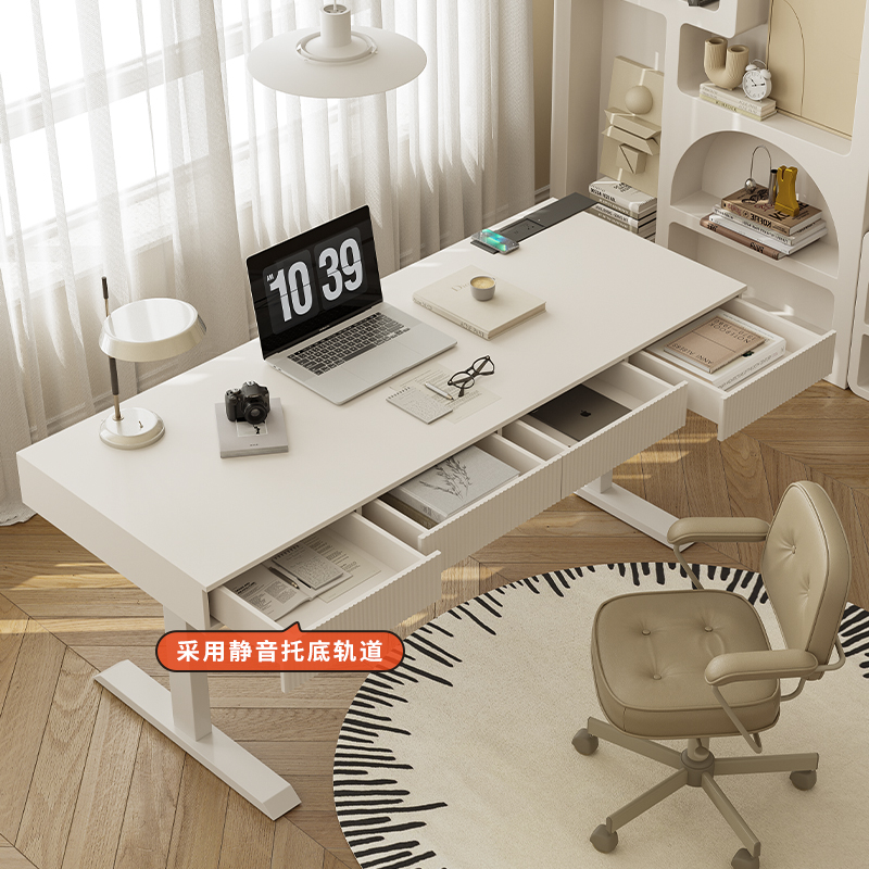 轻奢法式奶油风电动升降书桌智能家用学习工作台办公带抽屉电脑桌