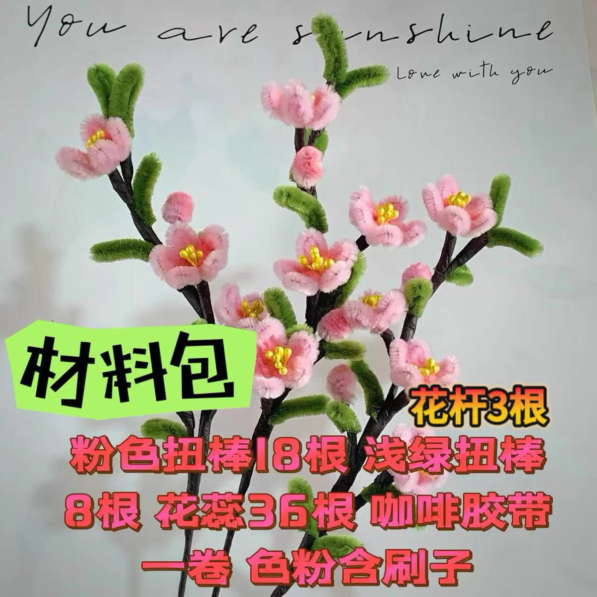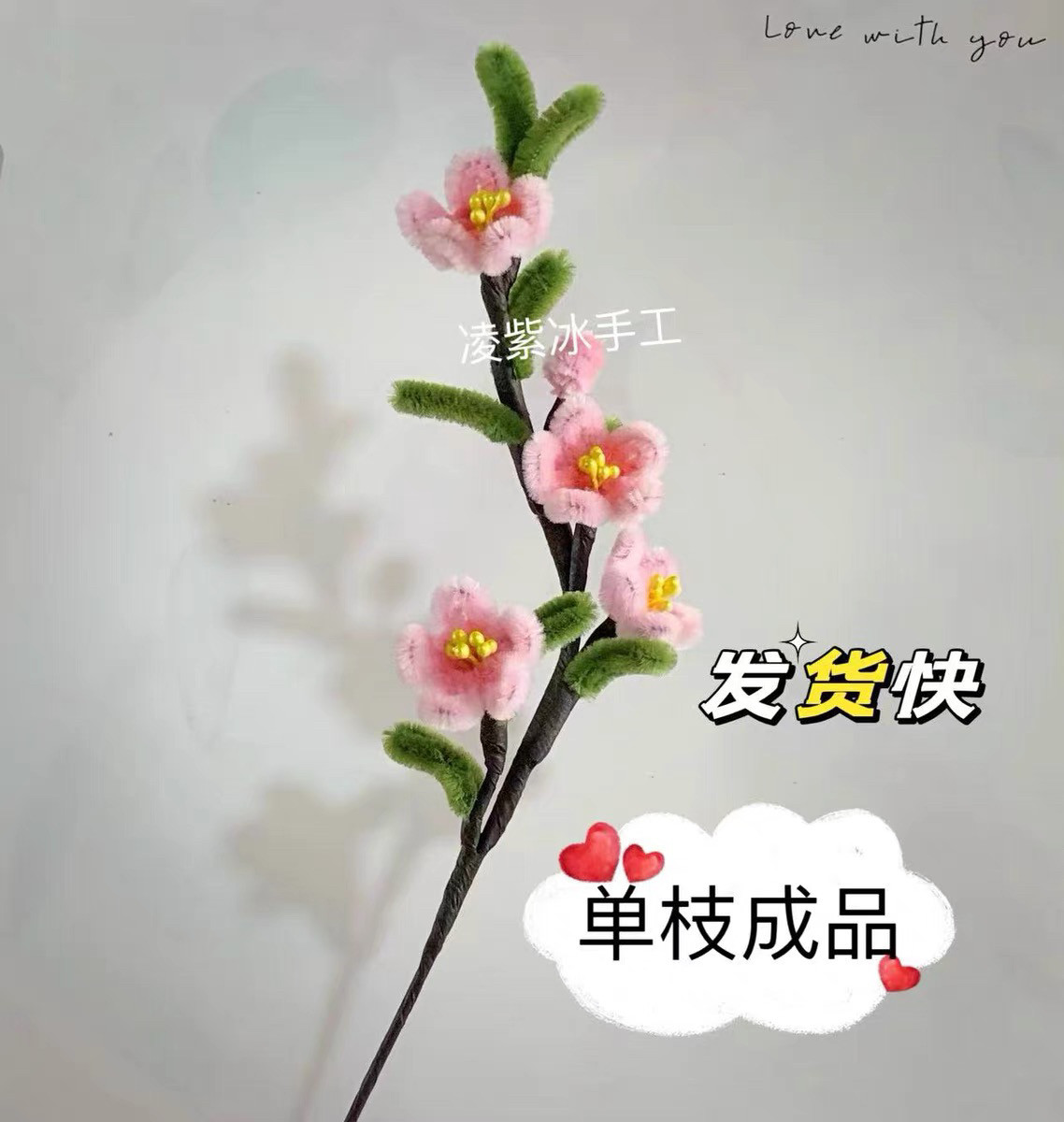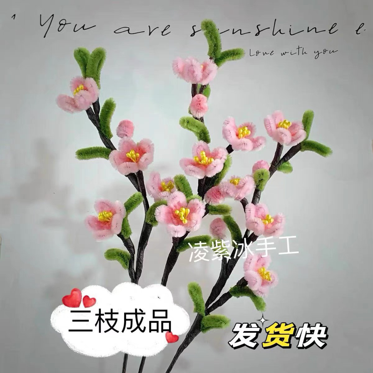 桃花樱花成品现货扭扭棒花束成品毛绒绒花仿真花送闺蜜女友礼物