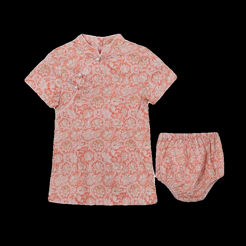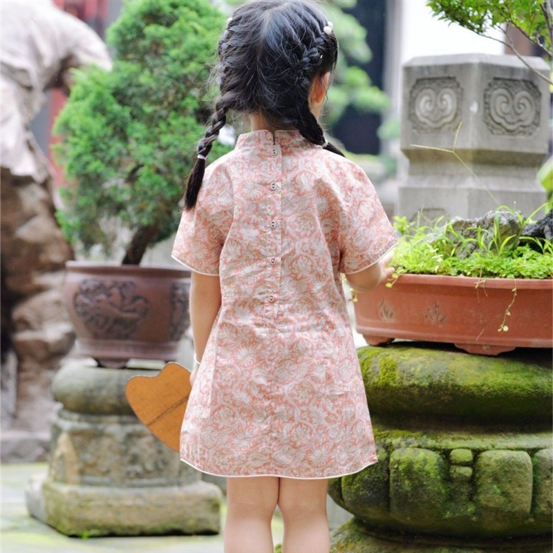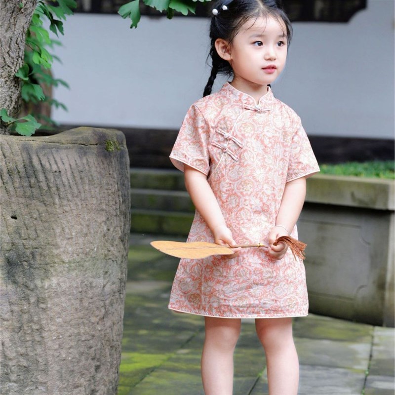 2024夏季新款儿童旗袍粉色中国风生日周岁女宝宝礼服中小童连衣裙