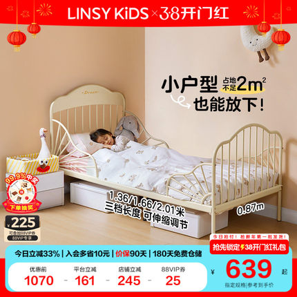 林氏米隆儿童床女孩公主床铁艺伸缩床婴儿小床带护栏单人床木业