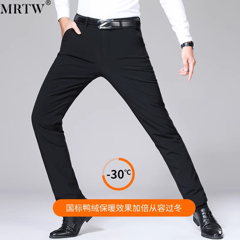 保暖白鸭鹅绒休闲西裤子可拆卸羽绒裤男士外穿中老年人冬装加厚款