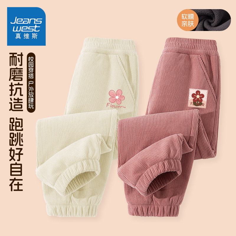 真维斯童装女童加绒裤子儿童冬季灯芯绒运动裤女孩加厚保暖长裤冬