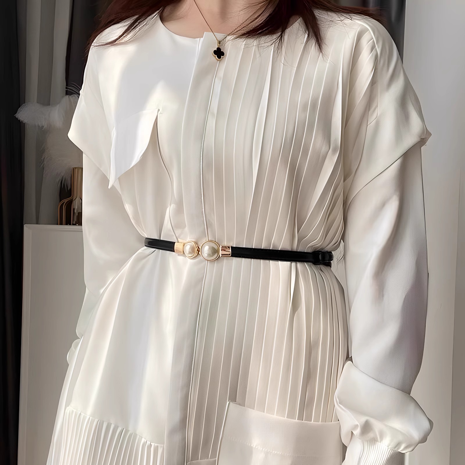 气质百搭细腰带珍珠显瘦细腰封女士新款装饰西装连衣裙收腰带潮流
