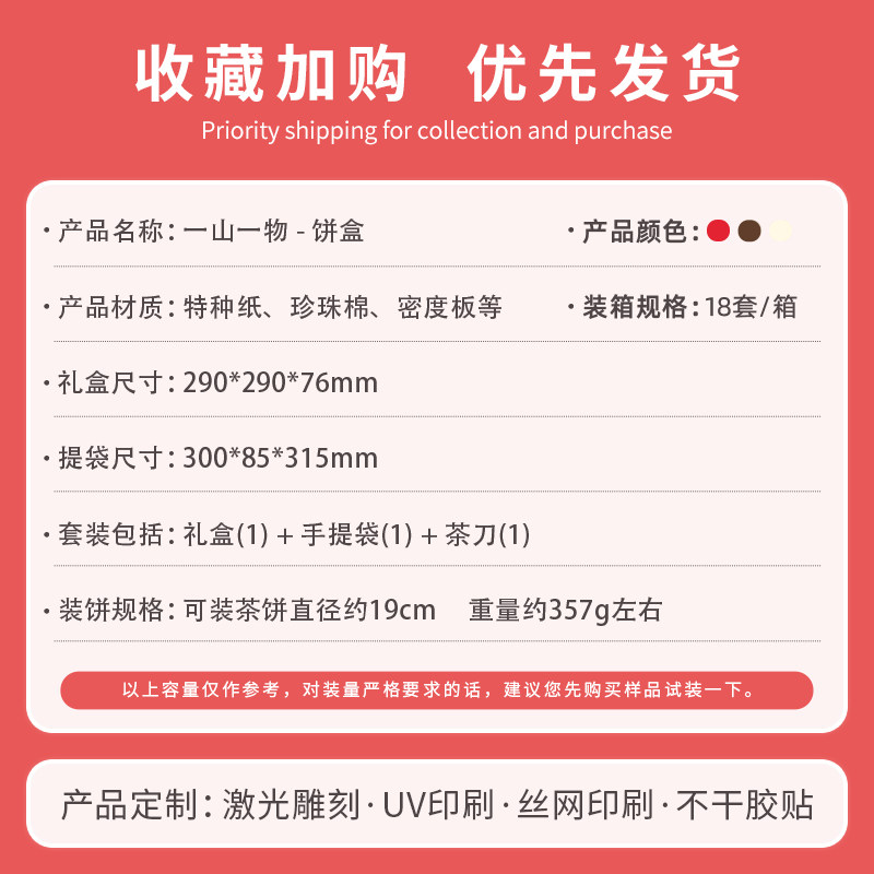 普洱茶饼收纳盒礼盒空盒单饼357克福鼎老白茶饼包装盒空礼盒定制