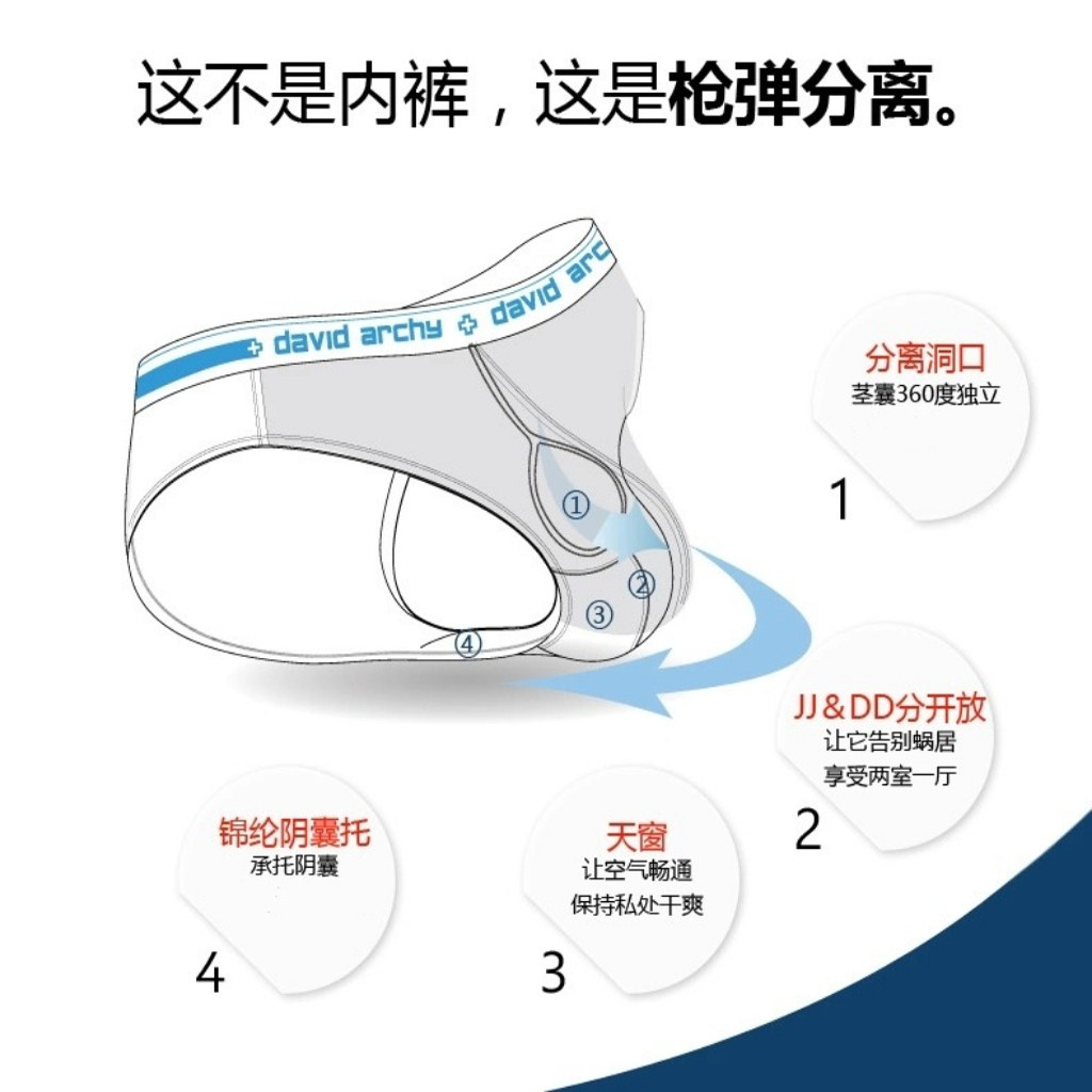 DavidArchy枪弹精索分离三角干爽透气男内裤静脉阴囊托囊袋曲张
