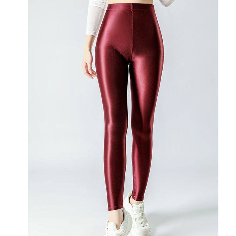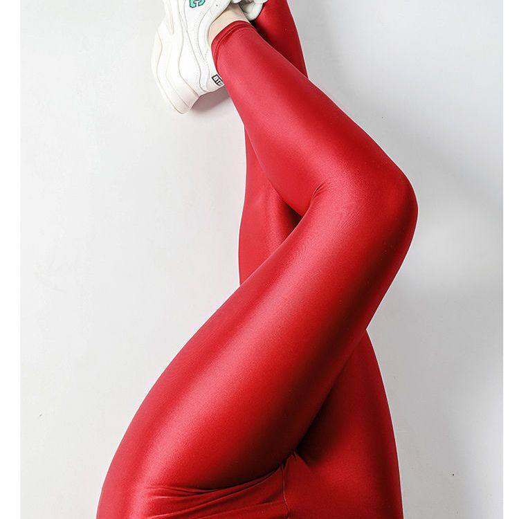 性感油亮光泽打底裤九分男女中高腰防勾丝裸感可外穿瑜伽运动裤子
