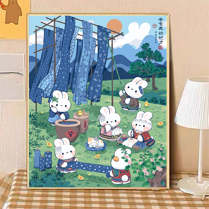 宝藏湾 数字油画diy【兔漂Dora】填充卡通手绘填色解压油画数字画