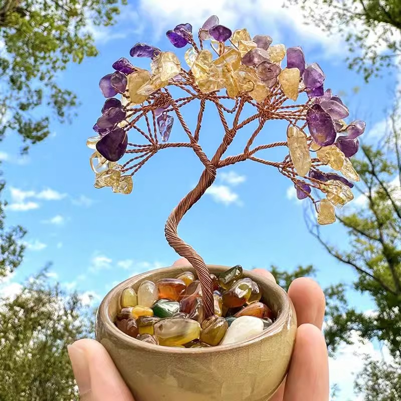 杭州官方灵隐天然水晶发财树摆件
