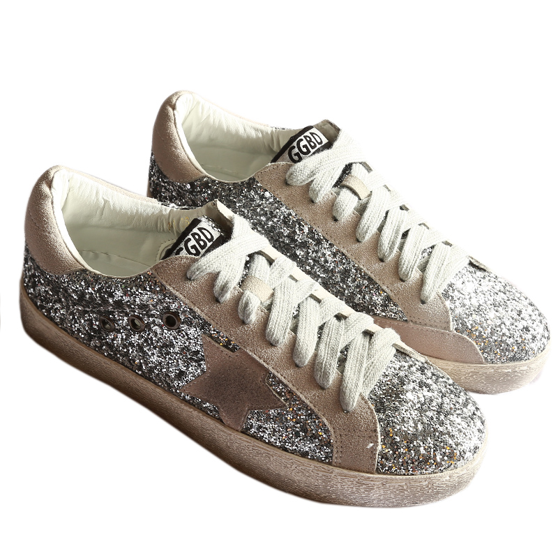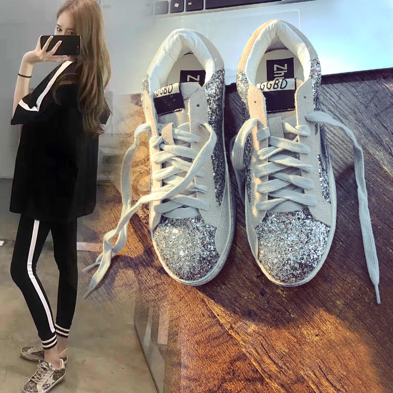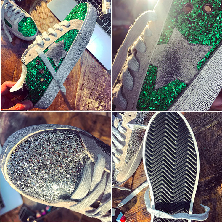 真皮星星亮片小脏鞋女2023新款脏脏鞋女秋冬加绒平底复古小白鞋女