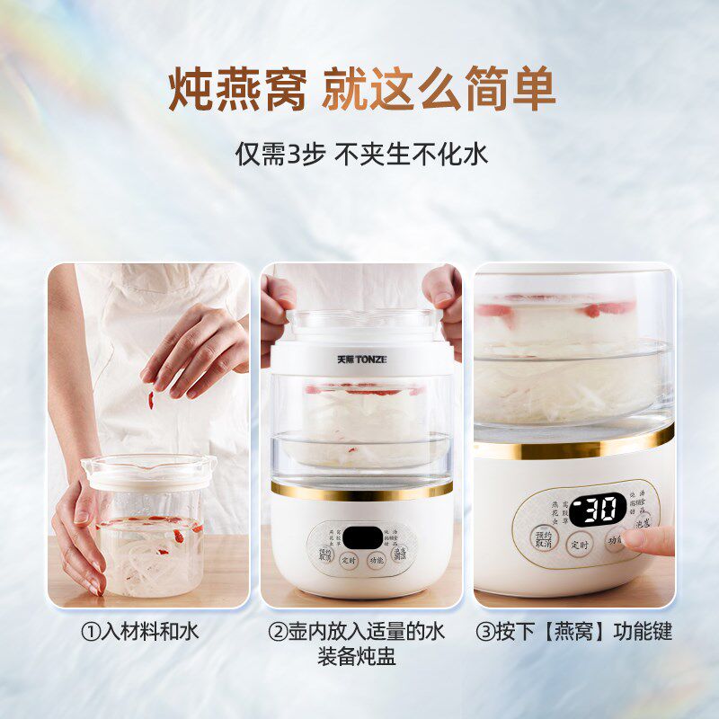 全自动恒温泡发家用隔水炖燕窝炖盅迷你煮胶小型玻璃天际机