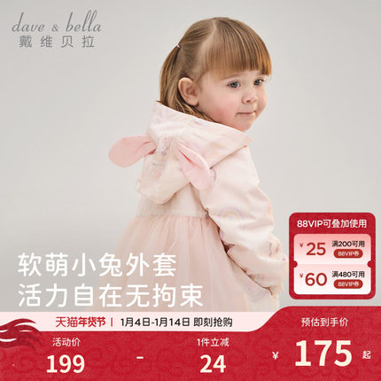 戴维贝拉女童外套春装2026新款儿童印花水母外套宝宝甜美外出风衣