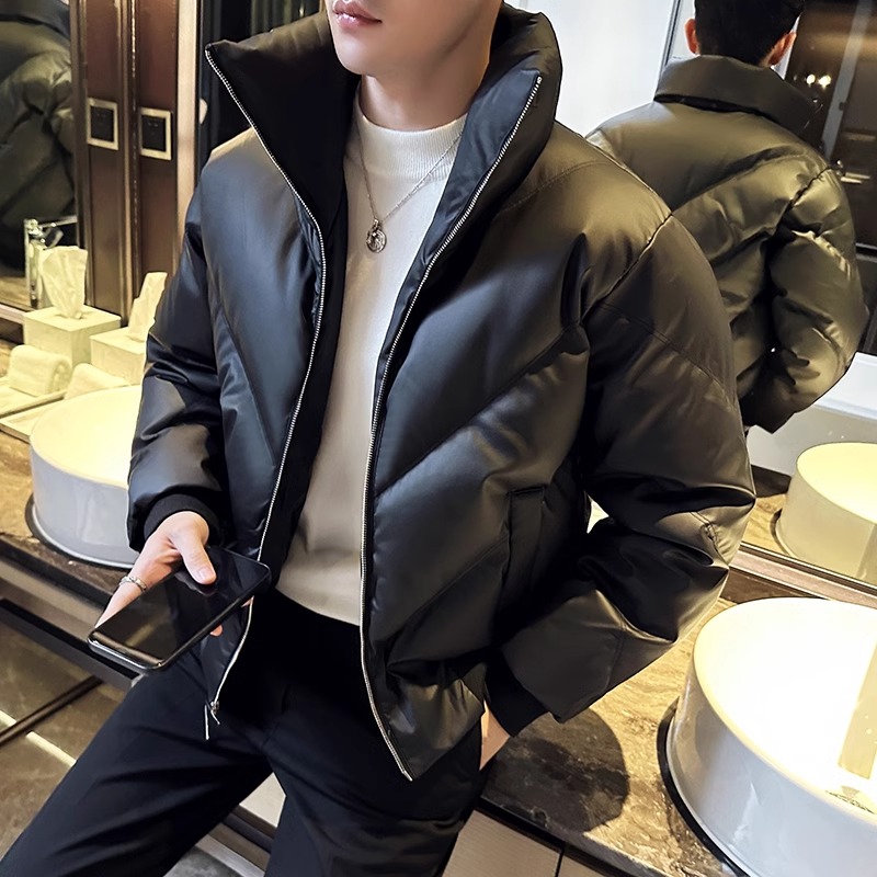 男士保暖棉衣立领冬季外套加厚短款面包服韩版潮流宽松棉袄PU皮衣