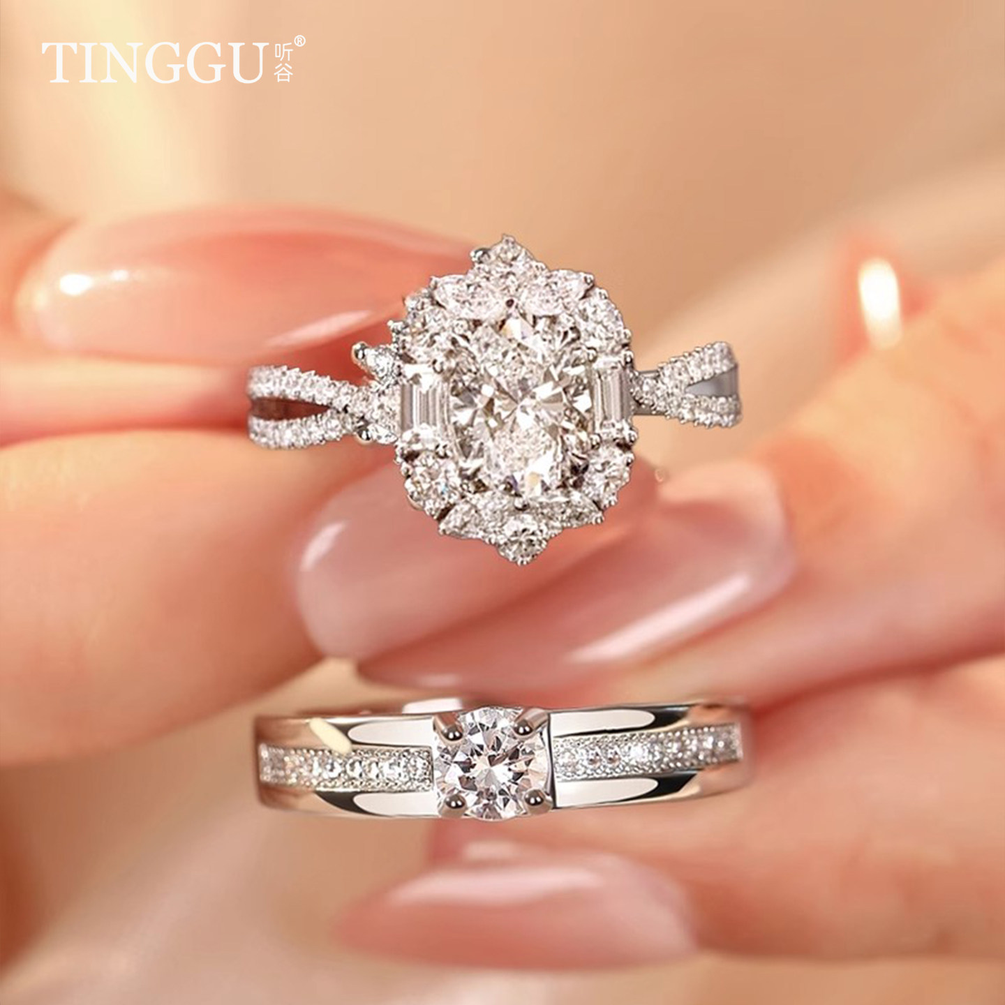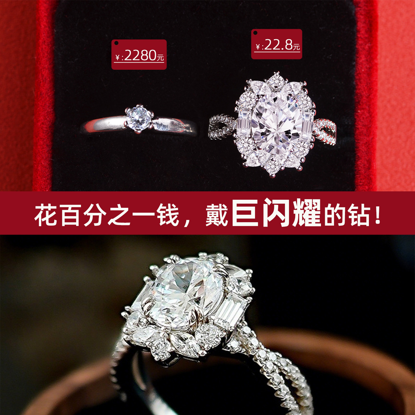 结婚对戒鸽子蛋戒指仿真莫桑钻戒
