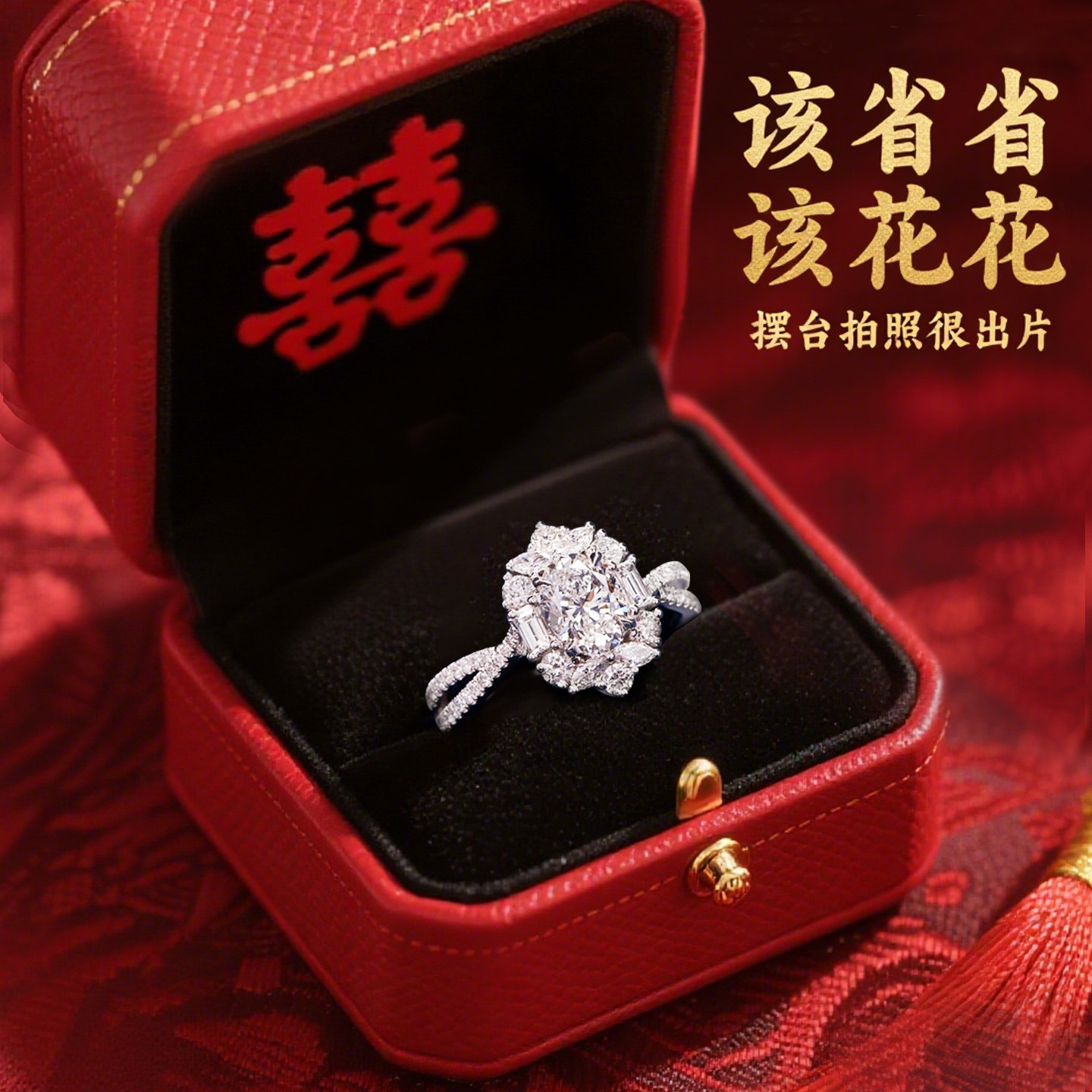 结婚对戒鸽子蛋戒指一对仿真莫桑石钻戒活口可调节指环婚礼用道具