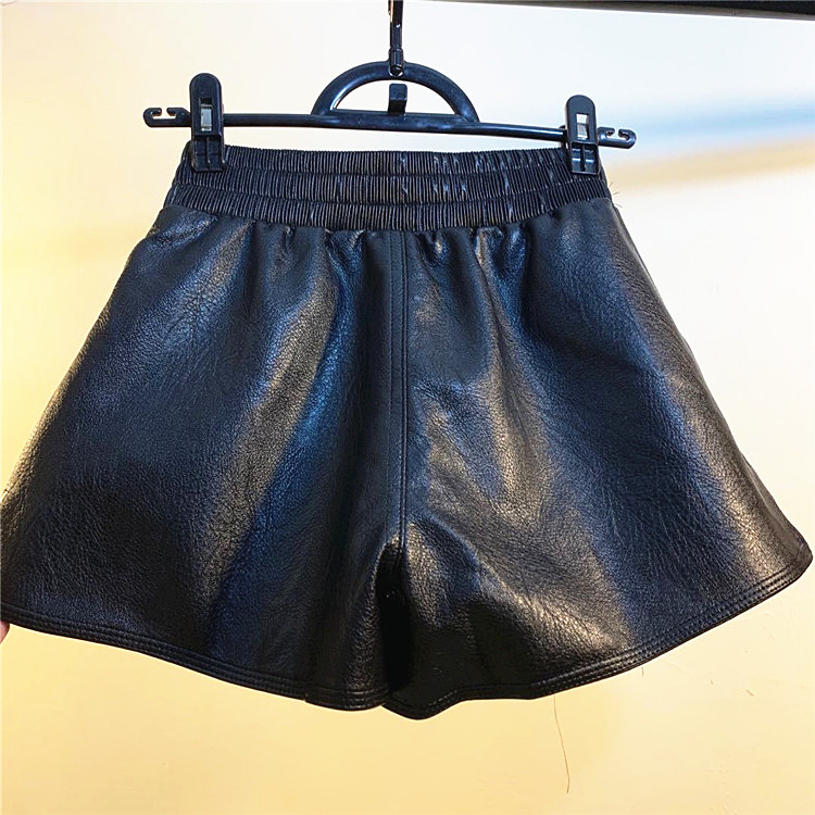 高腰皮短裤女秋冬外穿2025新款宽松显瘦阔腿百搭短裤黑色打底靴裤