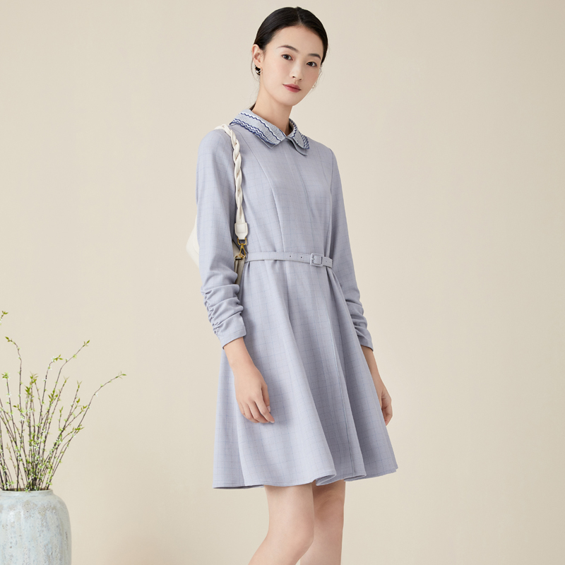 玳莎两件式翻领连衣裙女士春秋新款通勤气质修身显瘦优雅A字裙