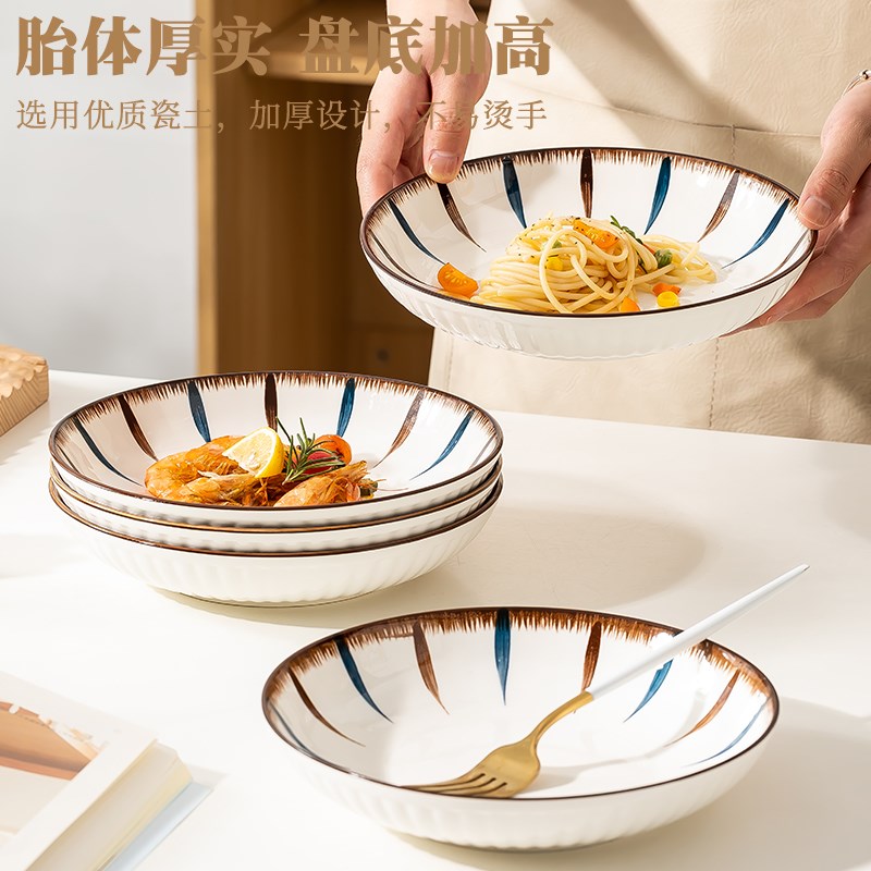 日式盘子菜盘家用2024新款陶瓷深盘创意高颜值餐盘套装釉下彩餐具