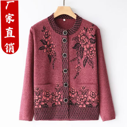 中老年妈妈女装毛衣开衫外套奶奶装针织衫老人宽松春秋冬装上衣女