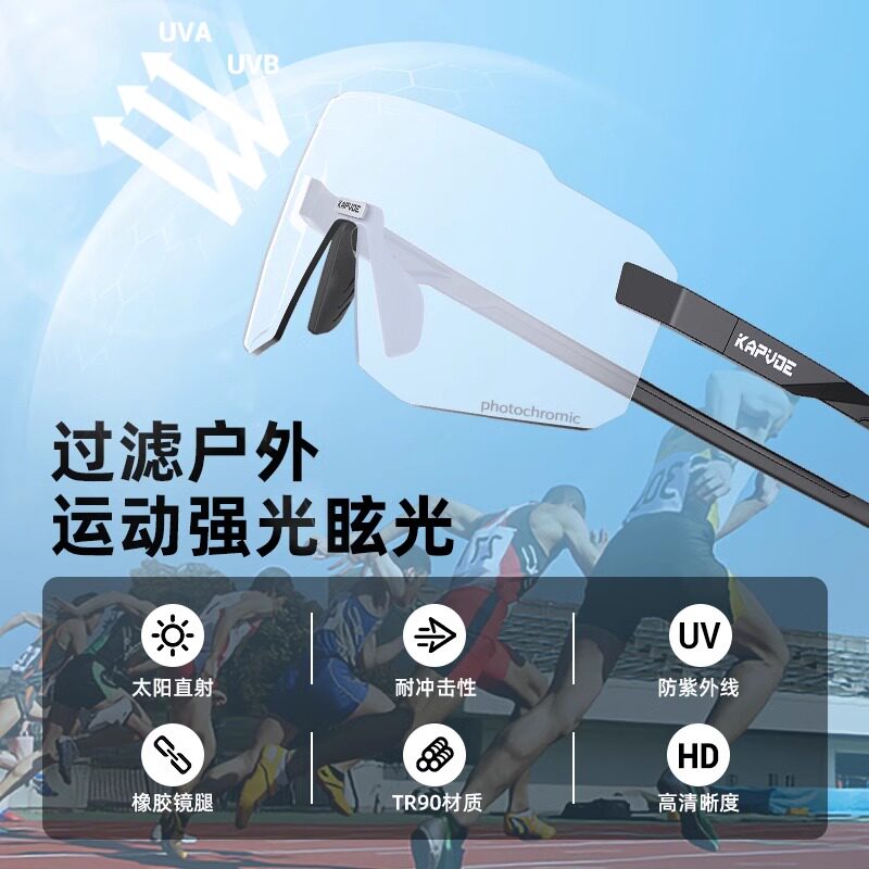 KAPVOE变色跑步眼镜马拉松运动骑行登山徒步自行公路车太阳镜护目