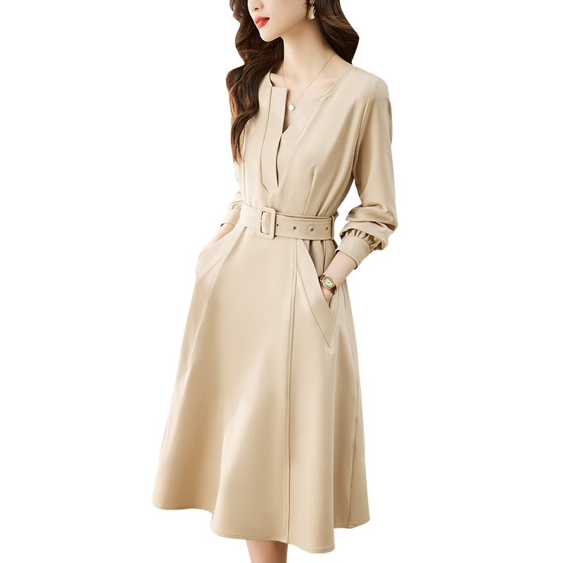 高端气质长袖连衣裙女2025春新款收腰显瘦洋气V领轻熟风裙子