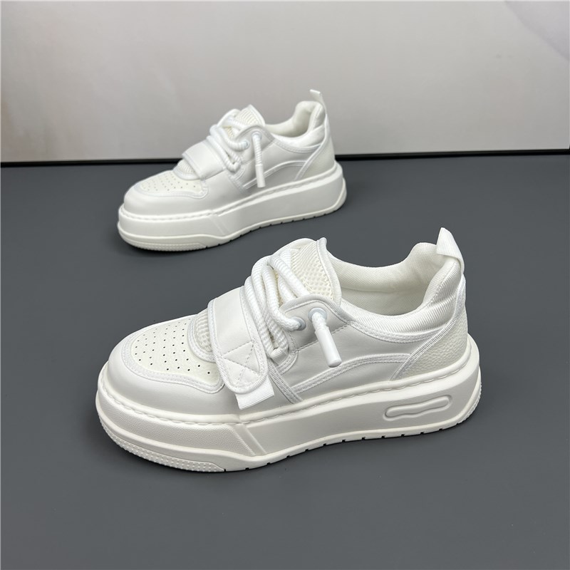 2024夏季新款运动休闲鞋魔术贴打孔透气一脚蹬厚底增高板鞋潮男鞋