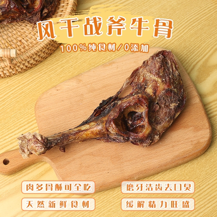 手工自制风干战斧牛骨磨牙适口好