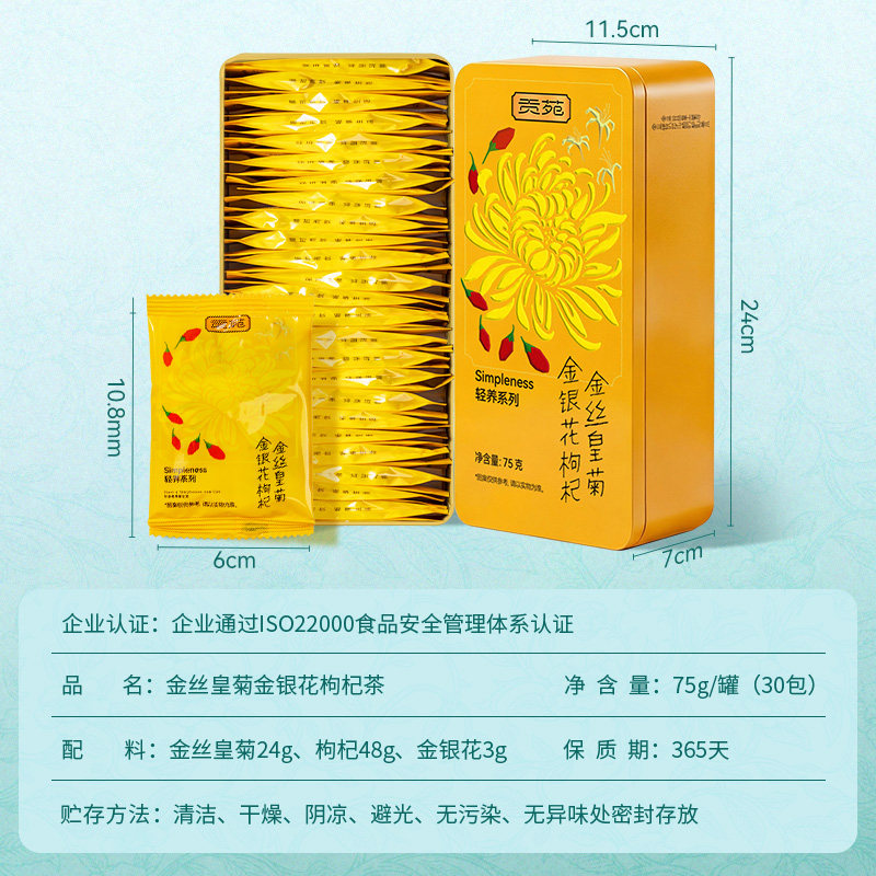 贡苑金丝皇菊金银花枸杞西洋参茉莉一根人参石斛菊花枸杞决明子茶