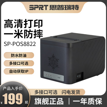 思普瑞特SP-POS8822热敏打印机80mm自动切刀蓝牙餐饮饭店菜单美团外卖收银后厨声光报警SPRT网口厨房打印机