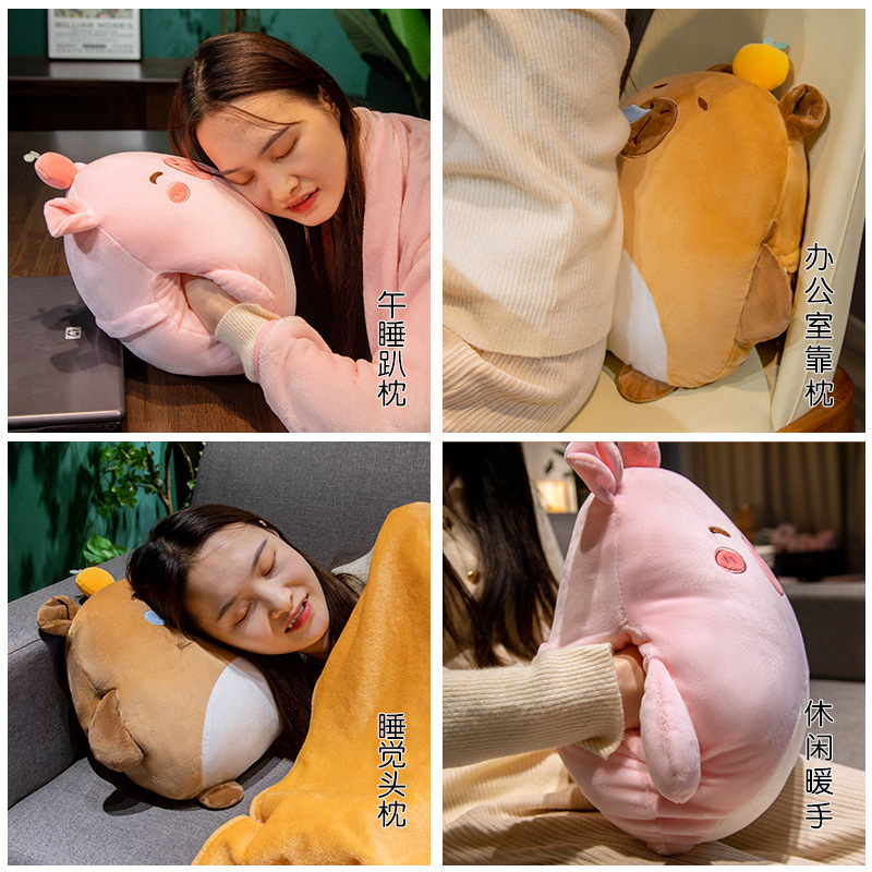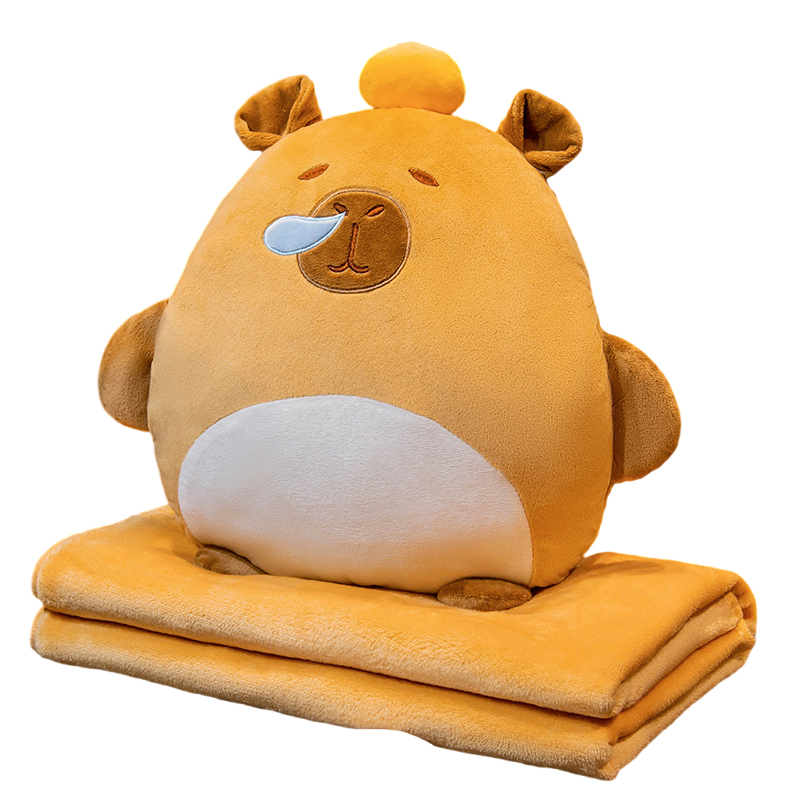 卡皮巴拉水豚抱枕被子两用办公室靠枕午睡枕头毯子二合一车载靠垫