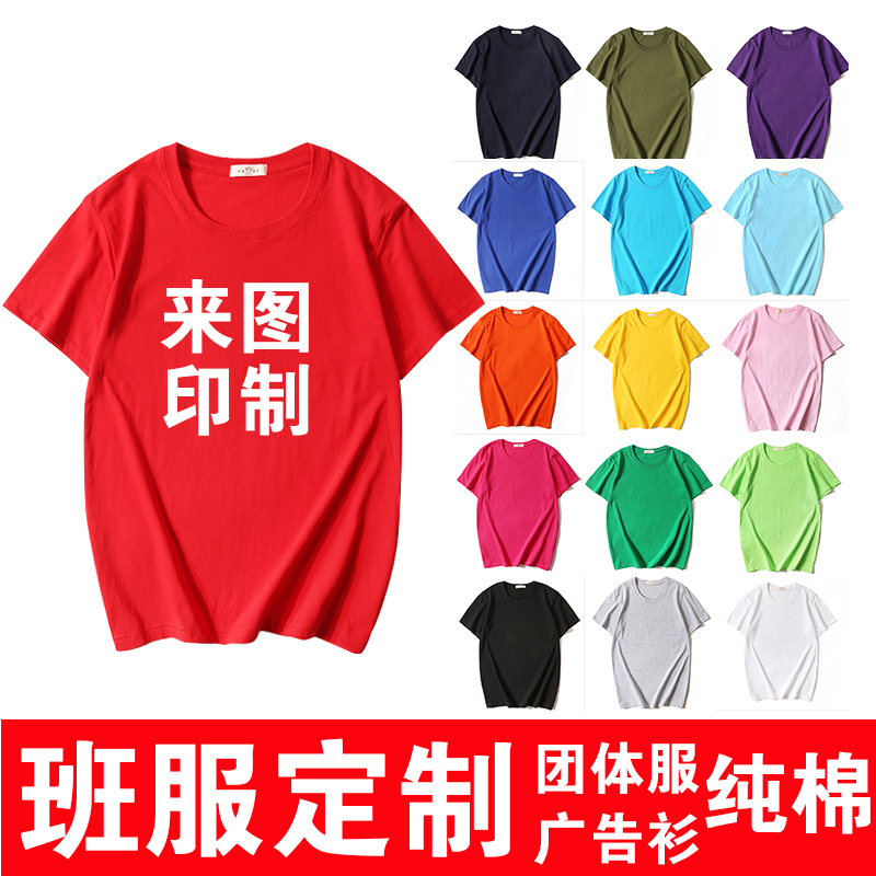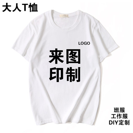 diy定制工作服圆领t恤男女新款纯棉宽松白色短袖手绘班服印字logo