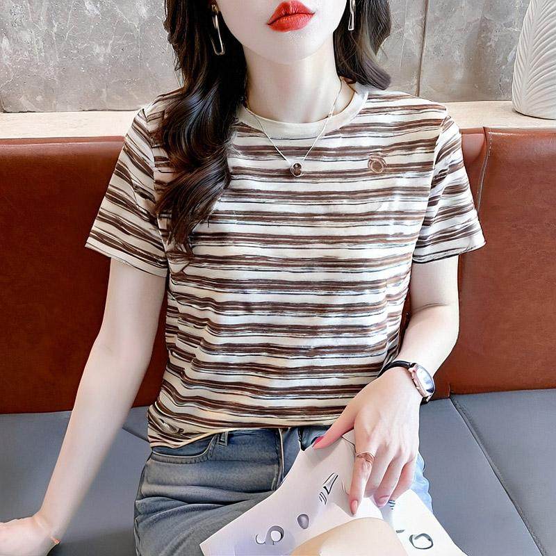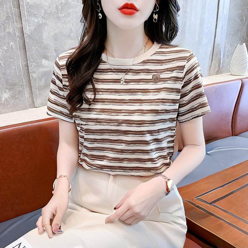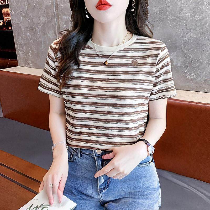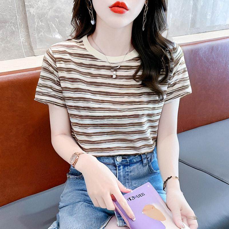 夏季薄款纯棉短袖t恤女2025新款体恤衫女款宽松显瘦条纹上衣百搭