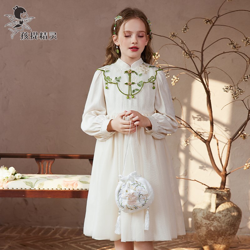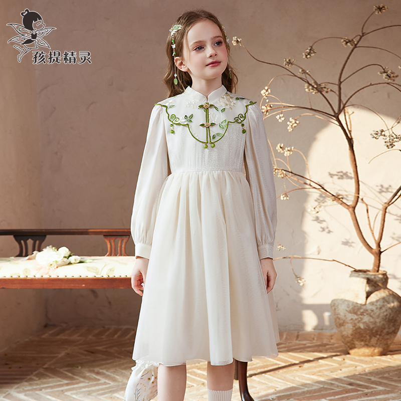 女童新中式国风连衣裙2024秋装新款洋气儿童蕾丝公主裙中大童裙子
