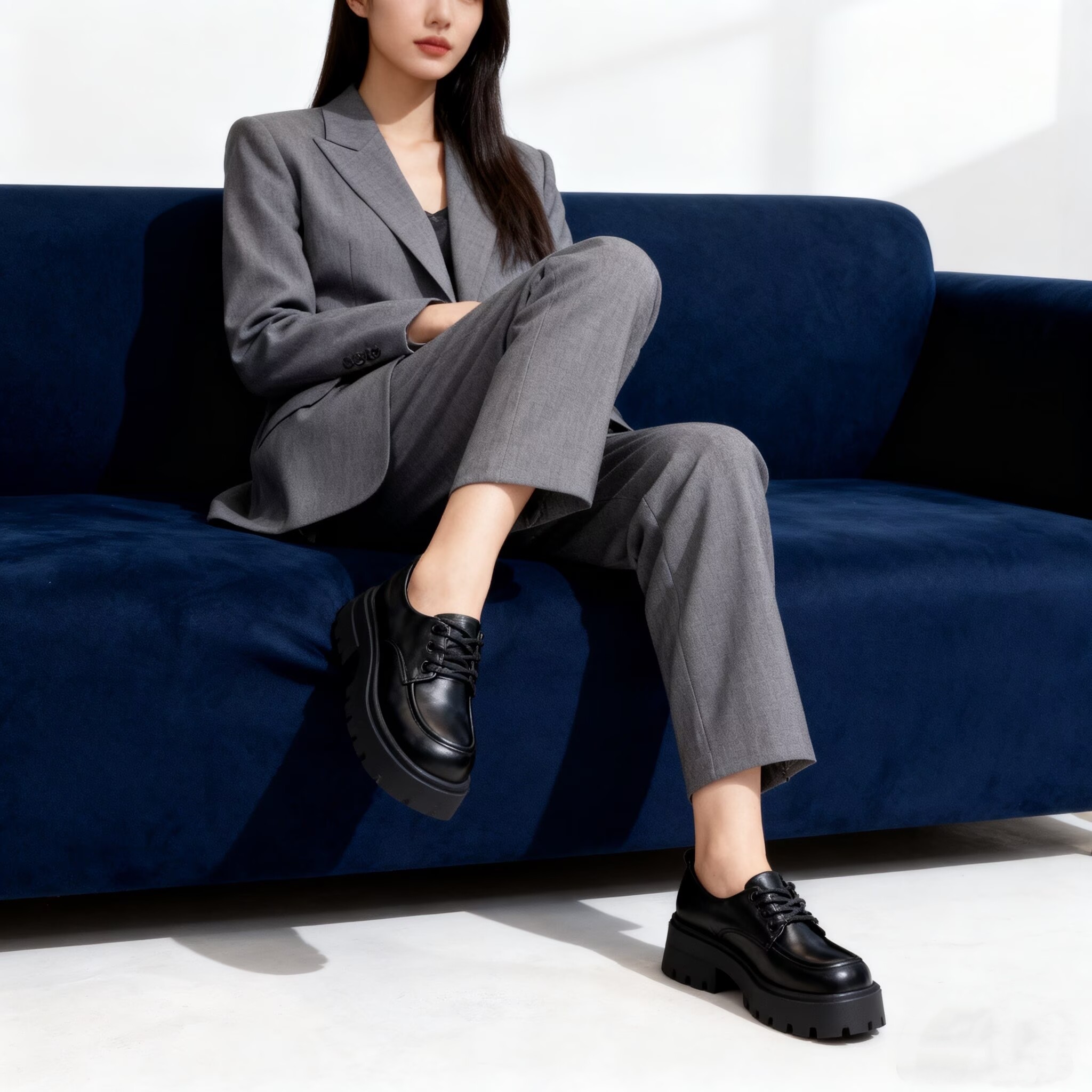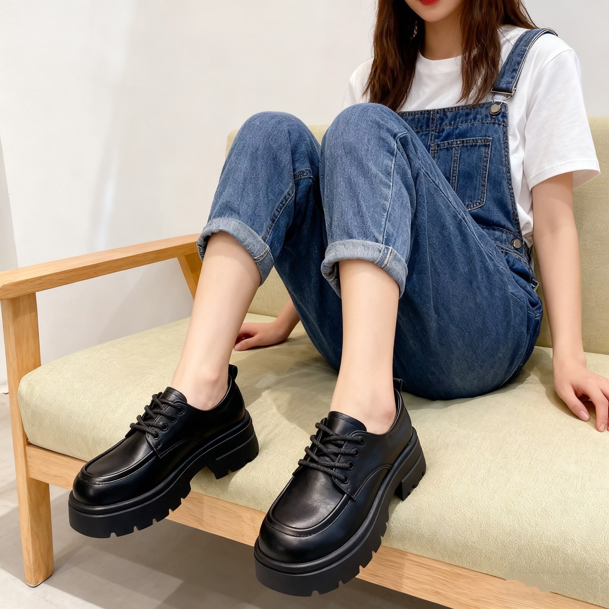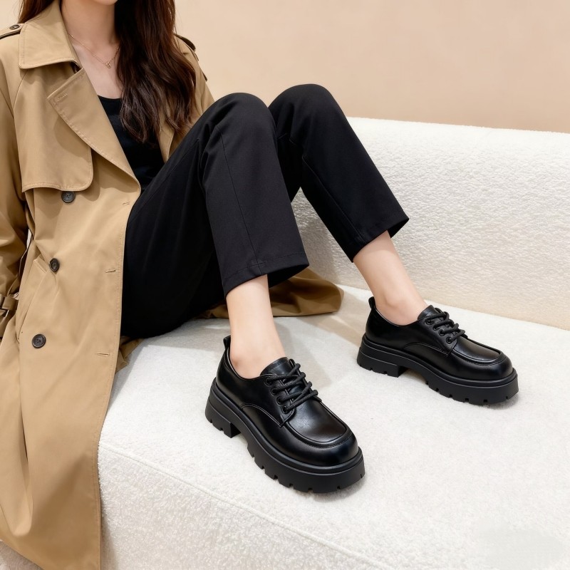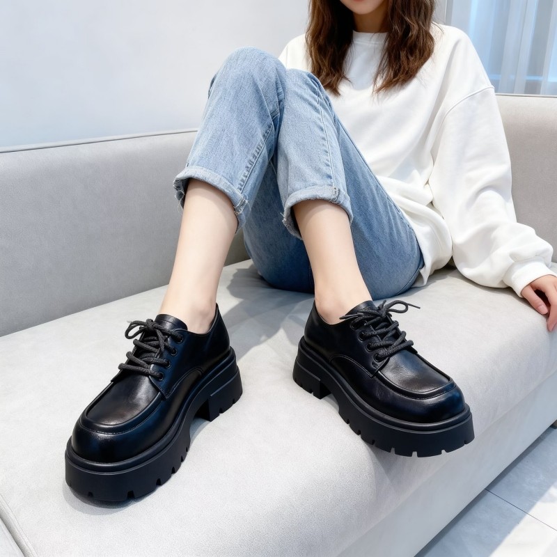 真皮+绒里!商场撤柜断码厚底圆头系带英伦风小皮鞋女MD80275-2