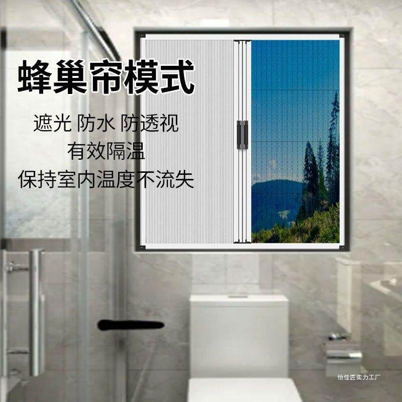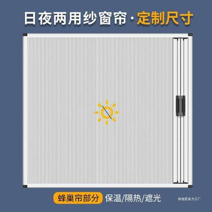 蜂巢帘内开日夜纱窗遮阳窗帘免打孔折叠隐形卫生间两用防蚊纱窗热