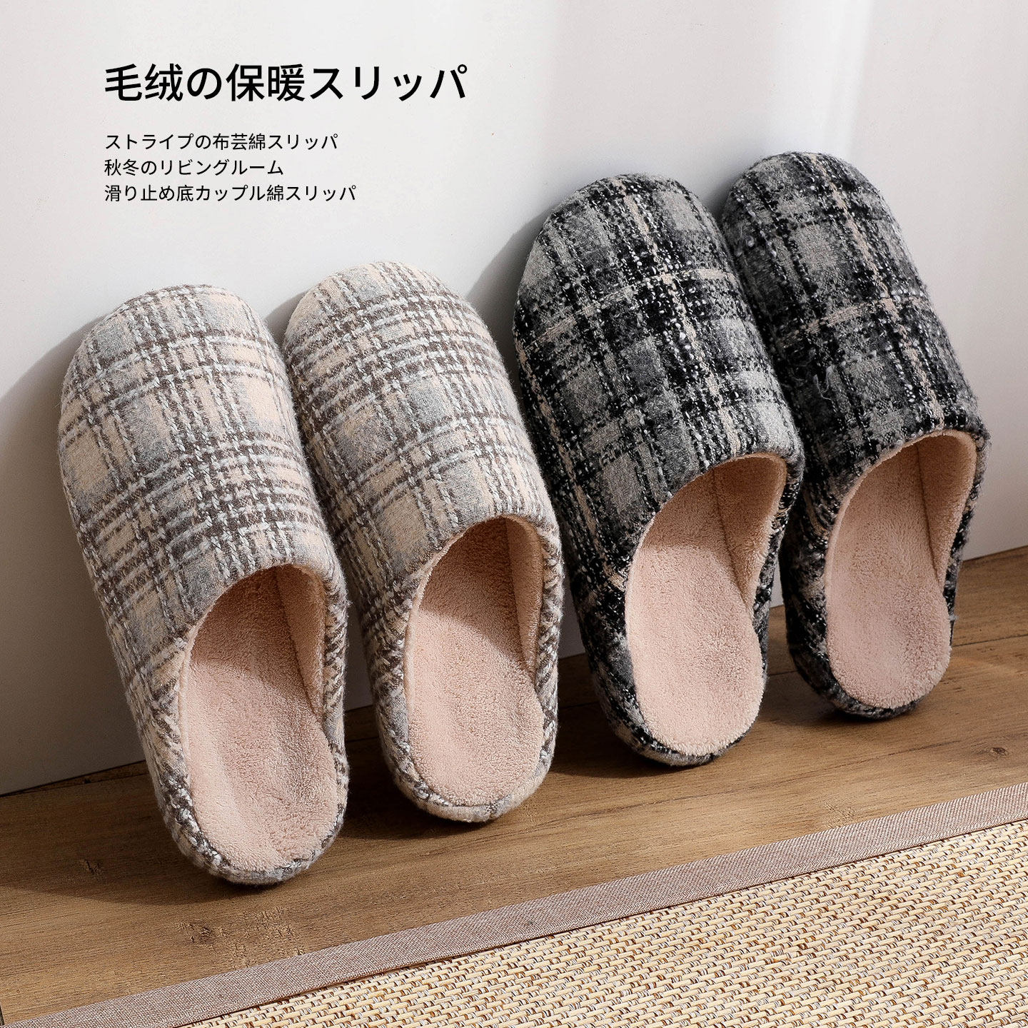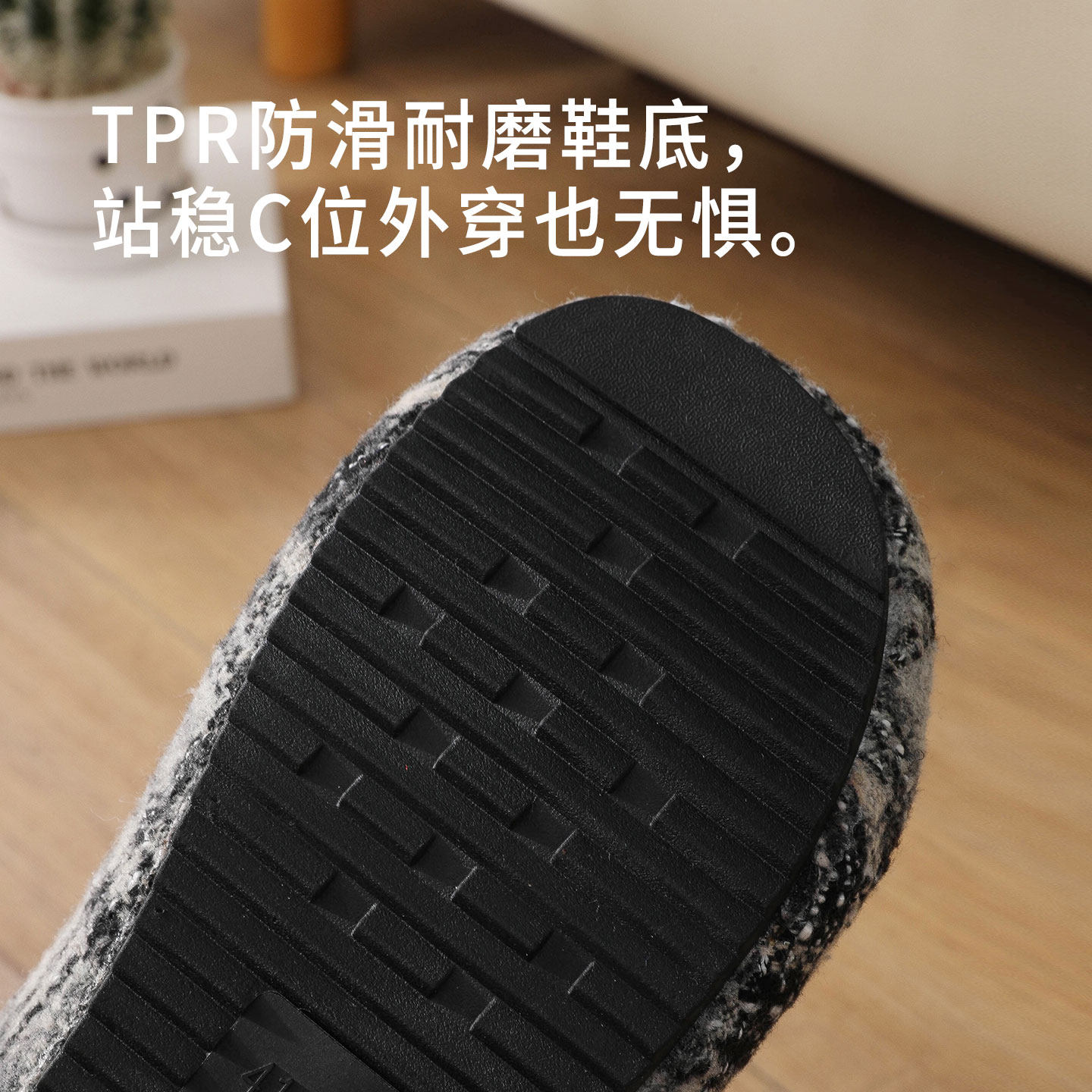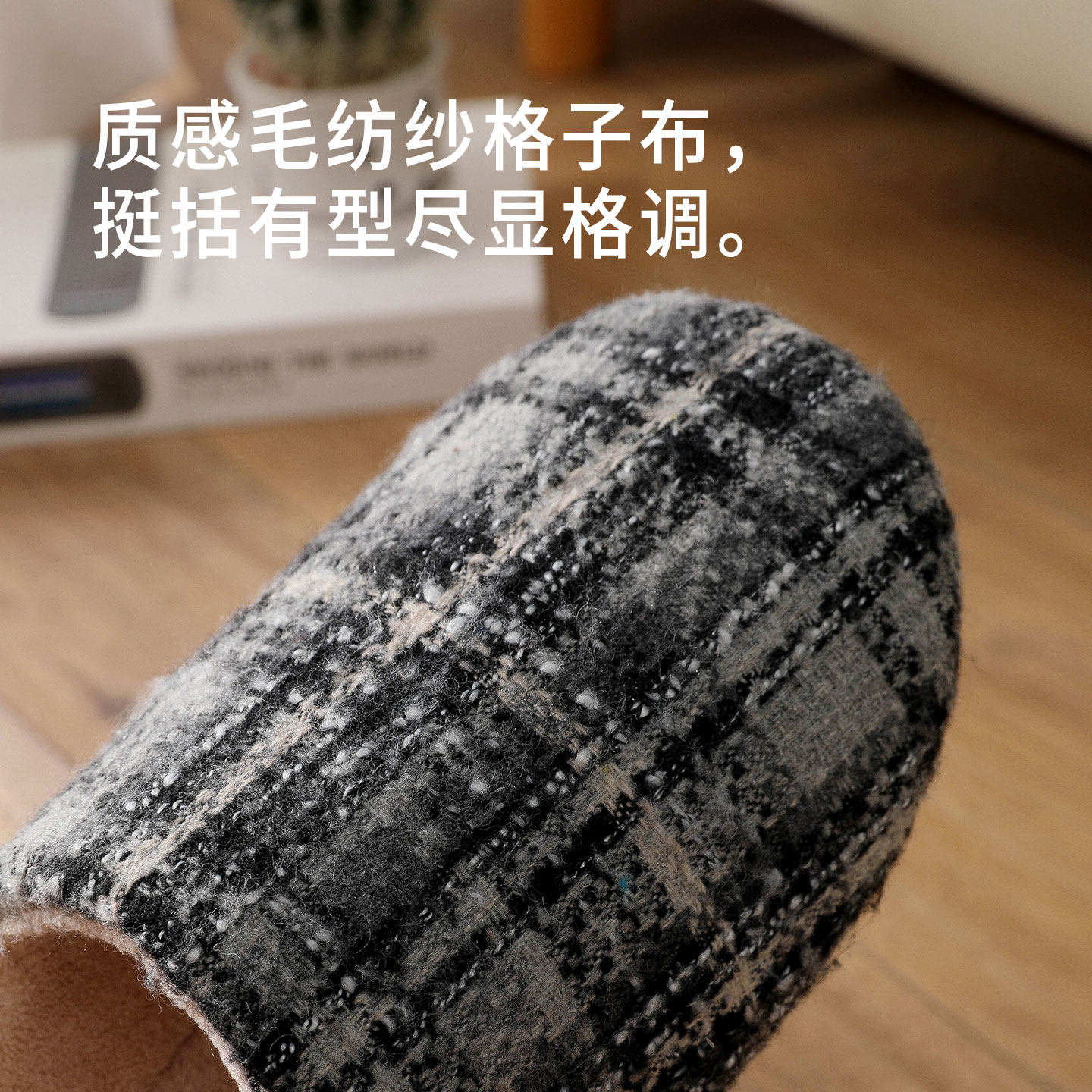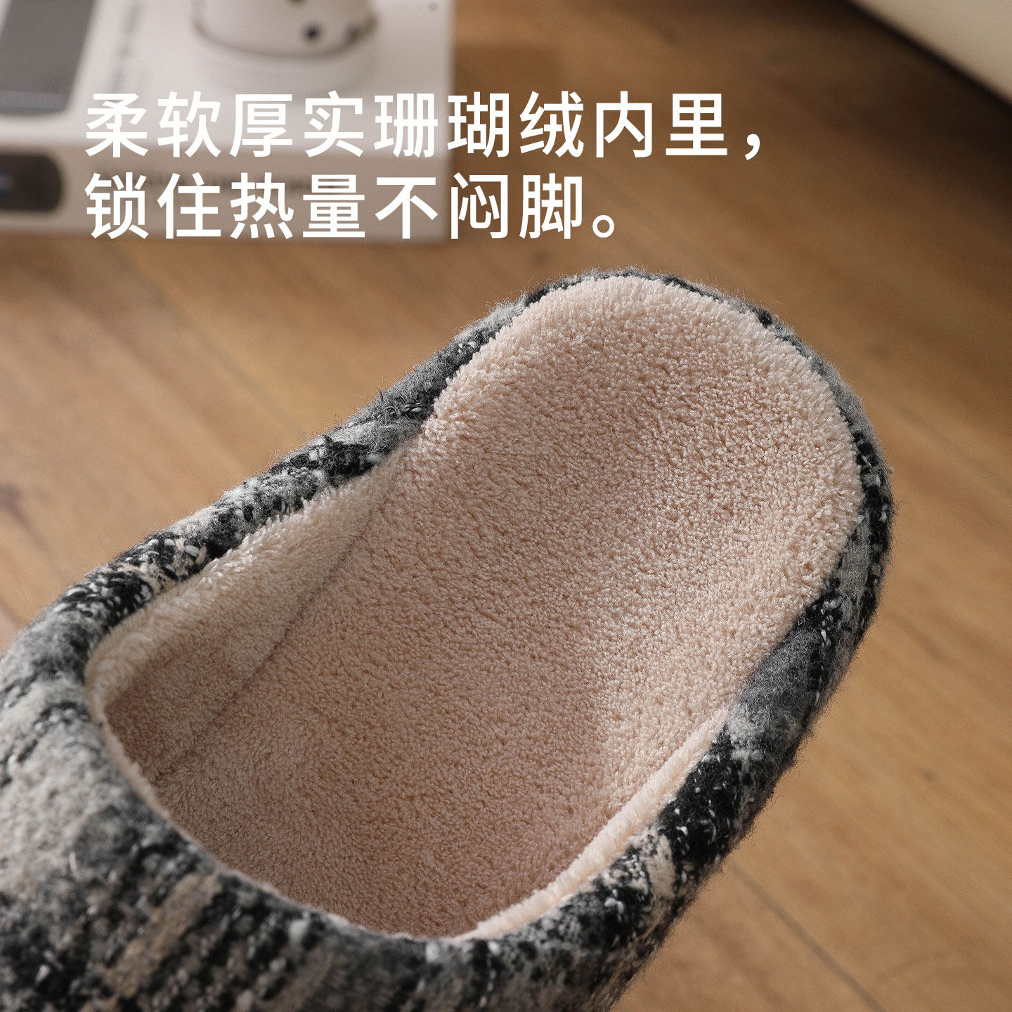棉拖鞋男款冬季经典格纹保暖室内家居家用厚底情侣防滑毛绒拖鞋男