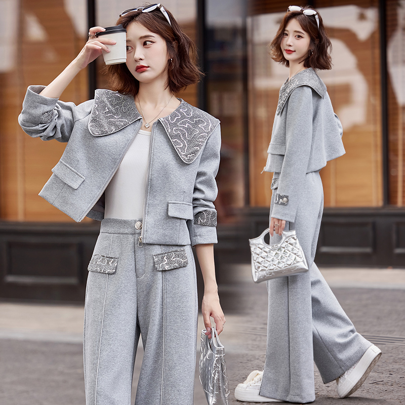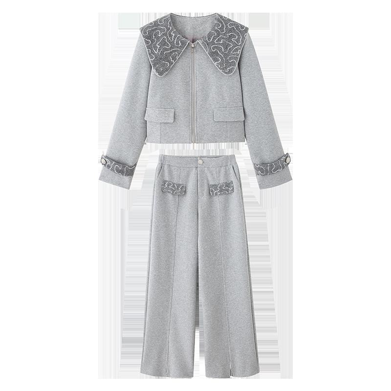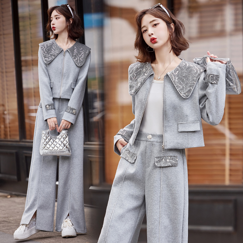 2025新款大翻领休闲运动套装女春秋高级感卫衣洋气阔腿裤轻奢显瘦