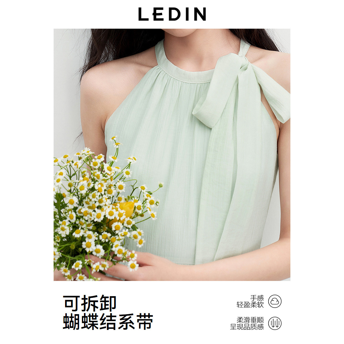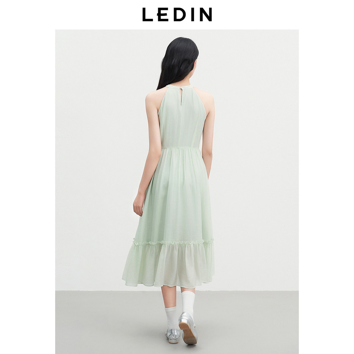 【植物系】乐町浪漫简约挂脖连衣裙2025夏季新款长裙浪漫无袖裙子