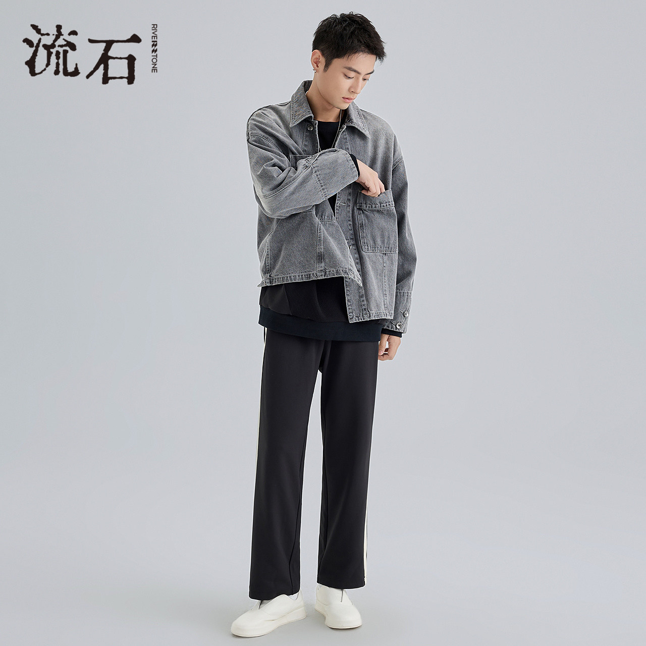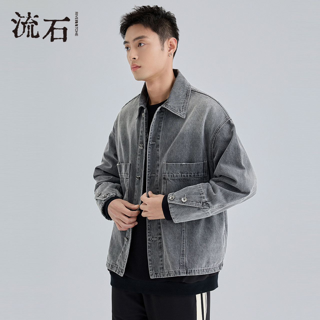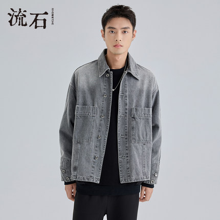 流石男装硬朗重工水洗牛仔夹克2026年春季新款复古经典百搭外套男