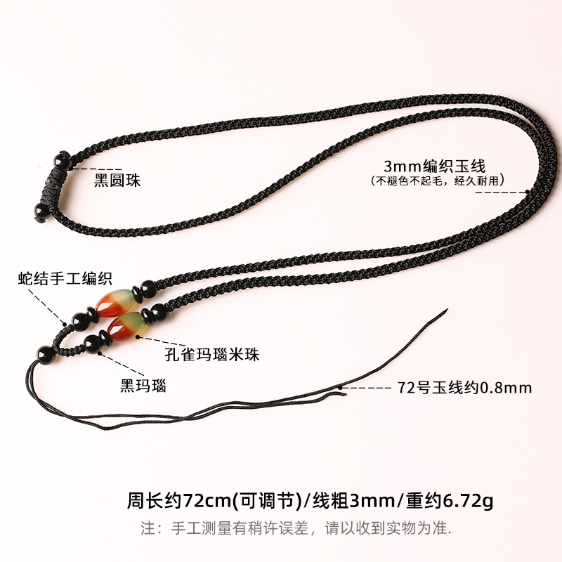 玉石玛瑙吊坠挂绳编织项链绳高档男女款红绳挂件玉坠玉佩绳子挂脖