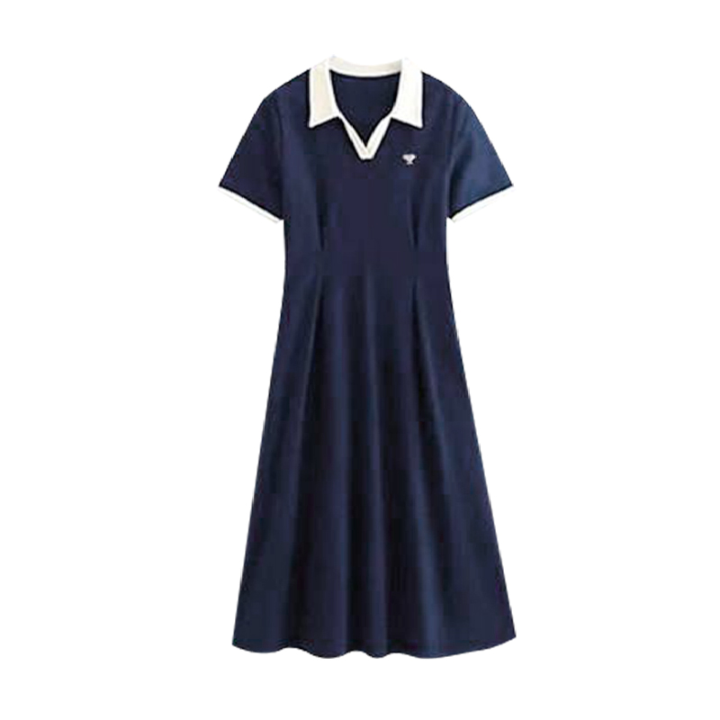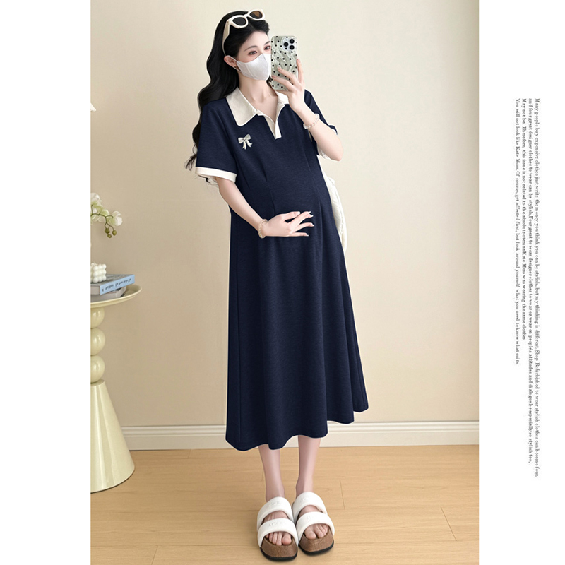 孕妇连衣裙夏季2025新款藏蓝色时尚宽松显瘦薄款短袖休闲风中长款