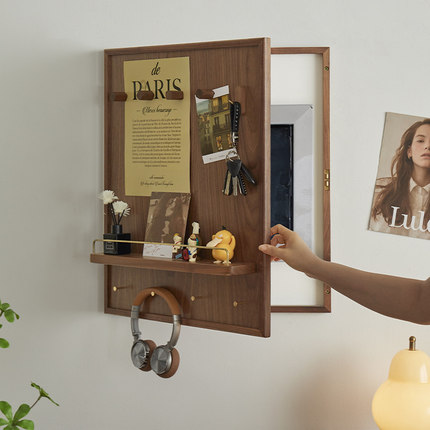 黑胡桃电表箱盒遮挡网红装饰画配电闸箱挂画轻奢开门式实木置物架