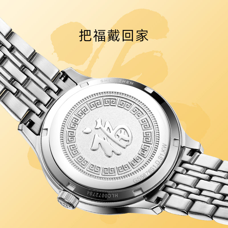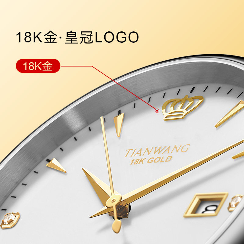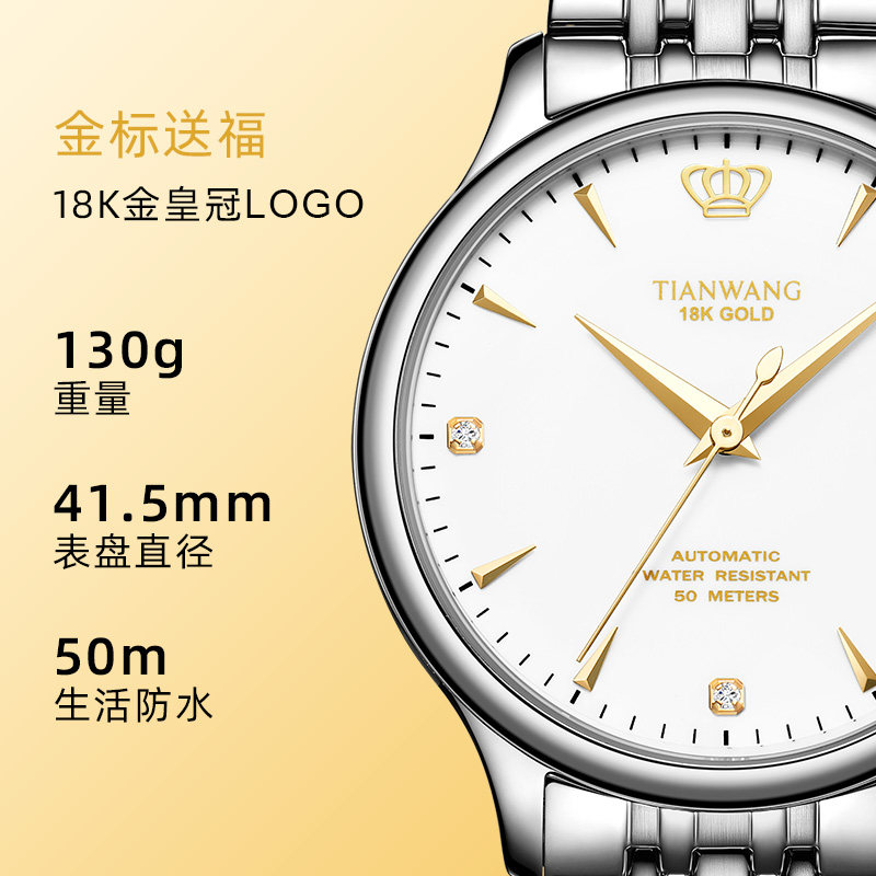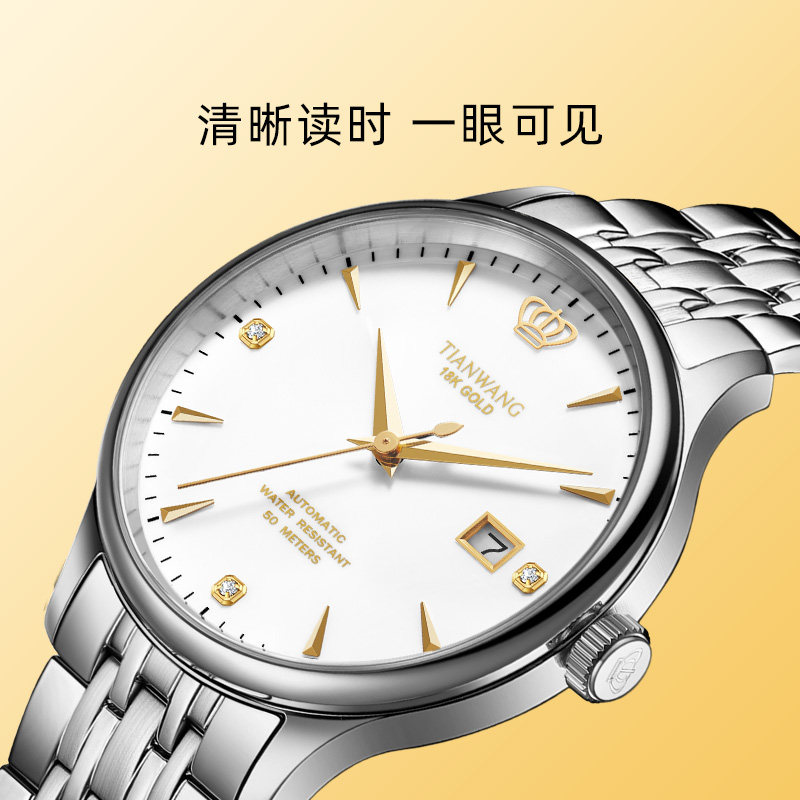 天王金标送福18K金男表商务日历防水自动机械手表5876男生礼物