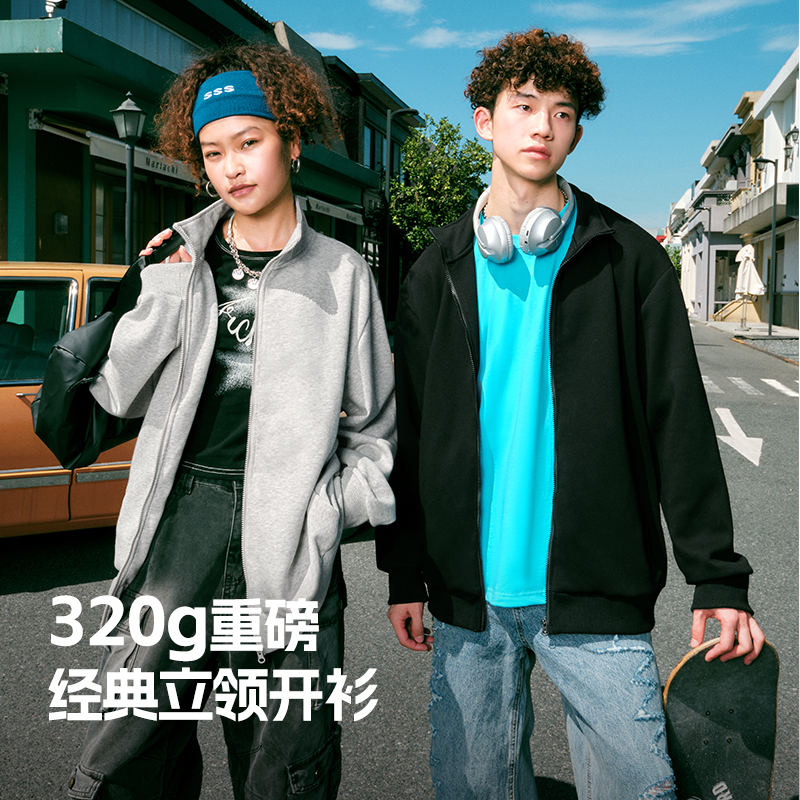 回力开衫卫衣外套男春秋立领黑色夹克百搭美式潮牌宽松运动上衣H
