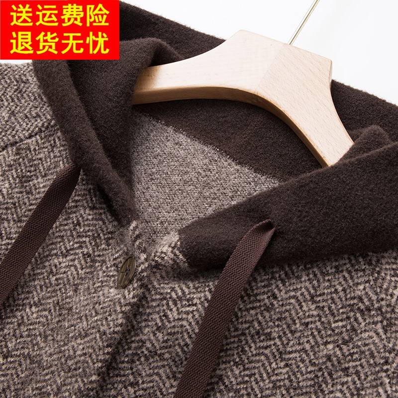 2025秋冬季新款高级感人字格纹毛呢短外套女宽松慵懒加厚连帽大衣