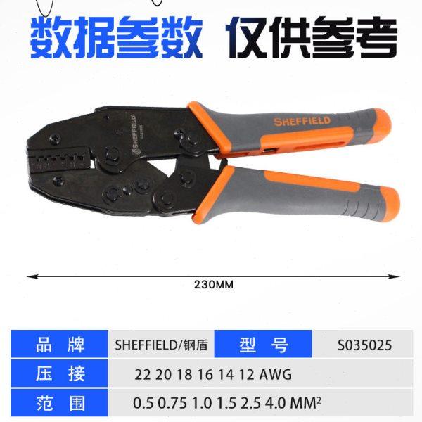 钢盾S035025 工业级精度欧式端子冷压压接钳棘轮省力压线钳工具