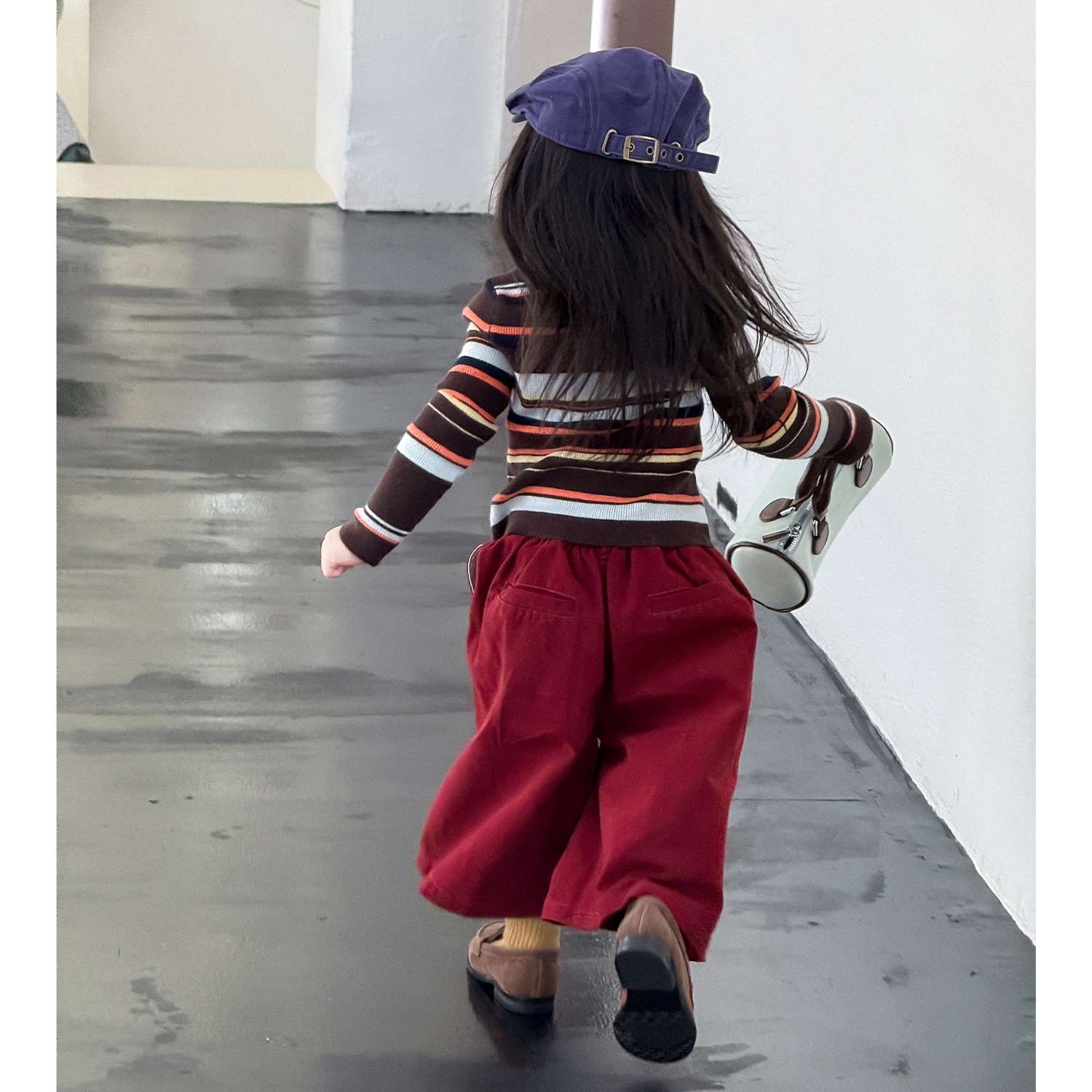 女童彩条毛衣套装秋装2025款女宝宝洋气时髦针织衫儿童秋季阔腿裤