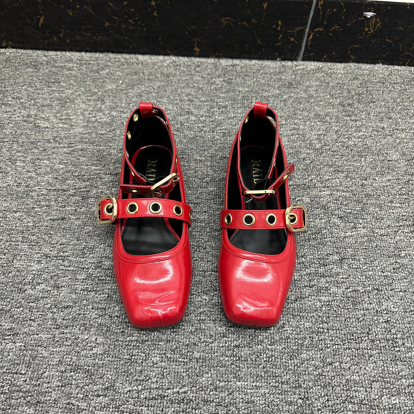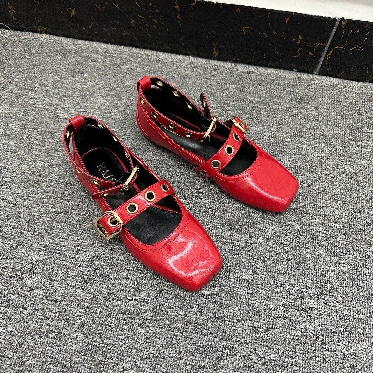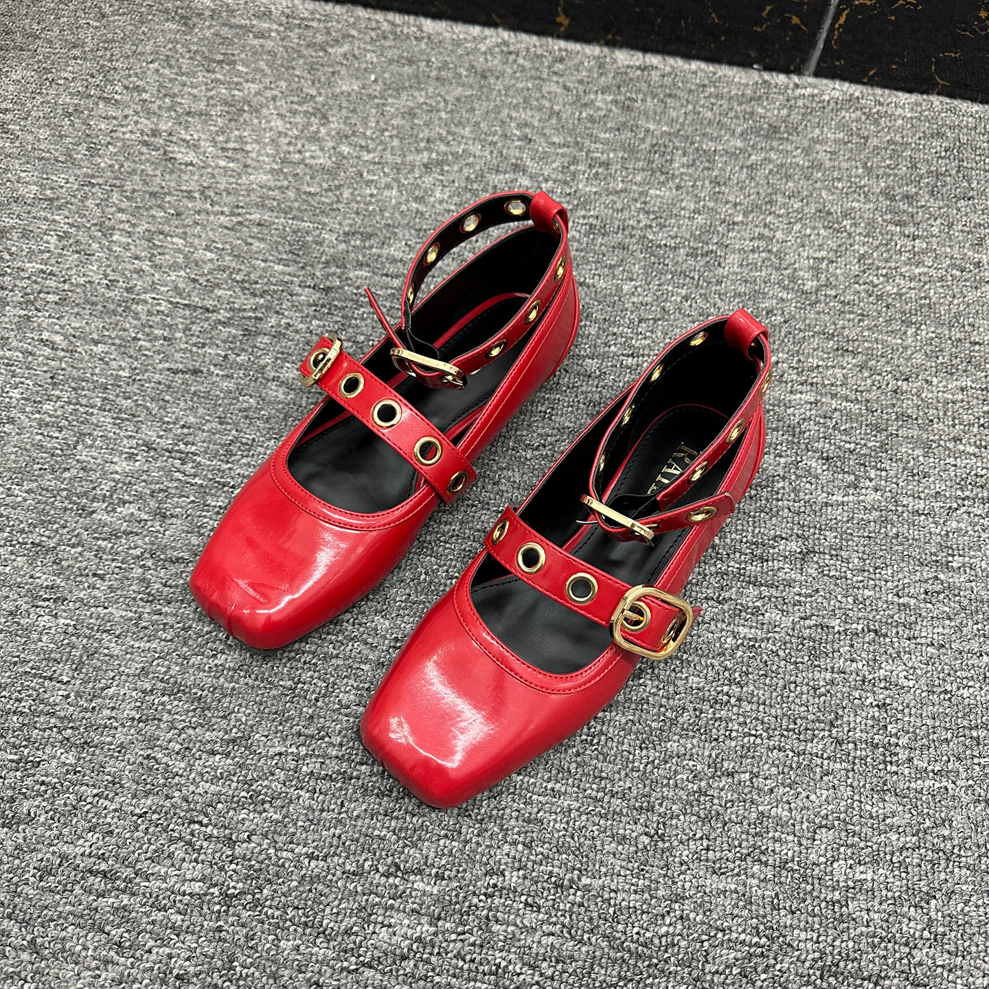 外贸出口铆钉一字扣单鞋女时髦褶皱方头轻便百搭平底玛丽珍女鞋
