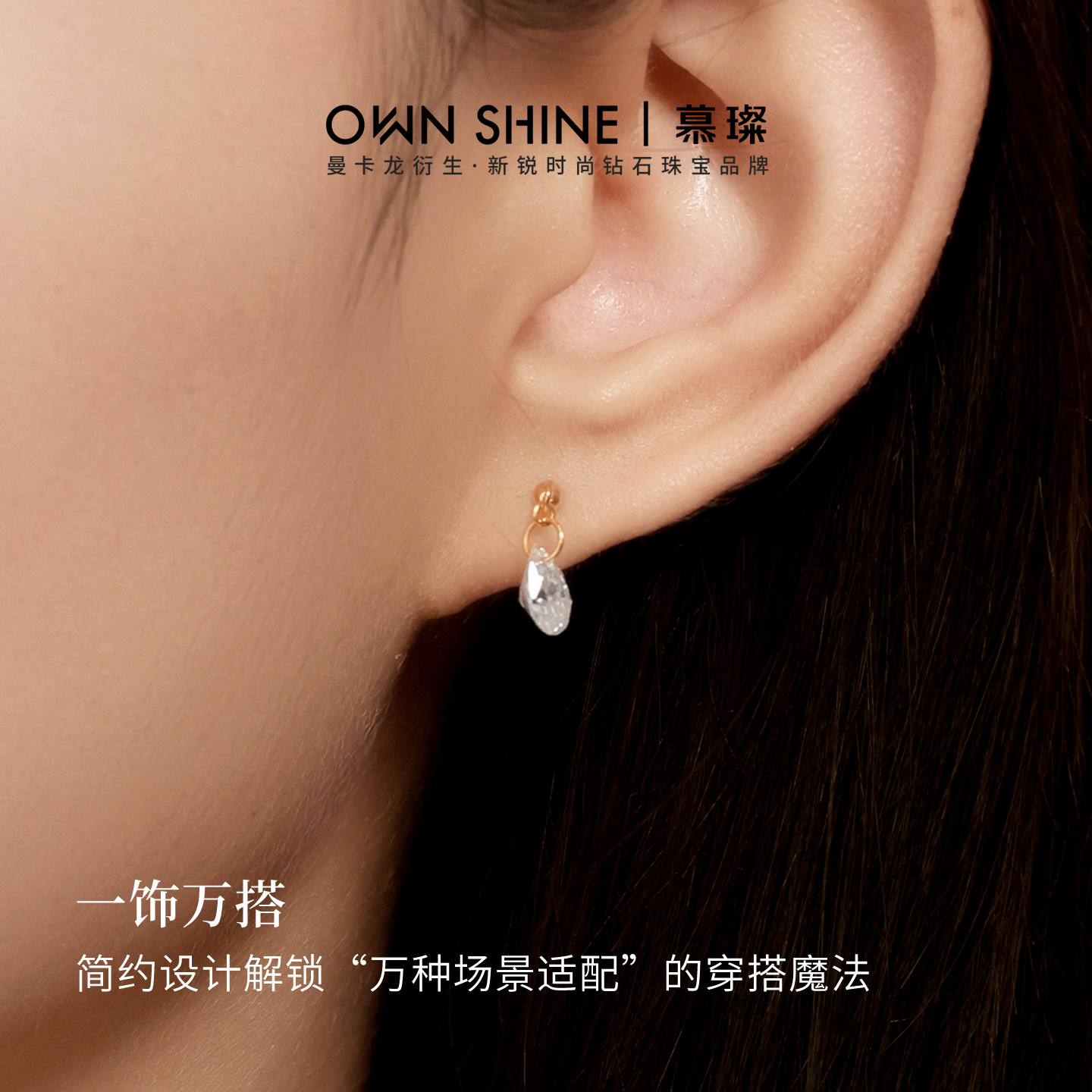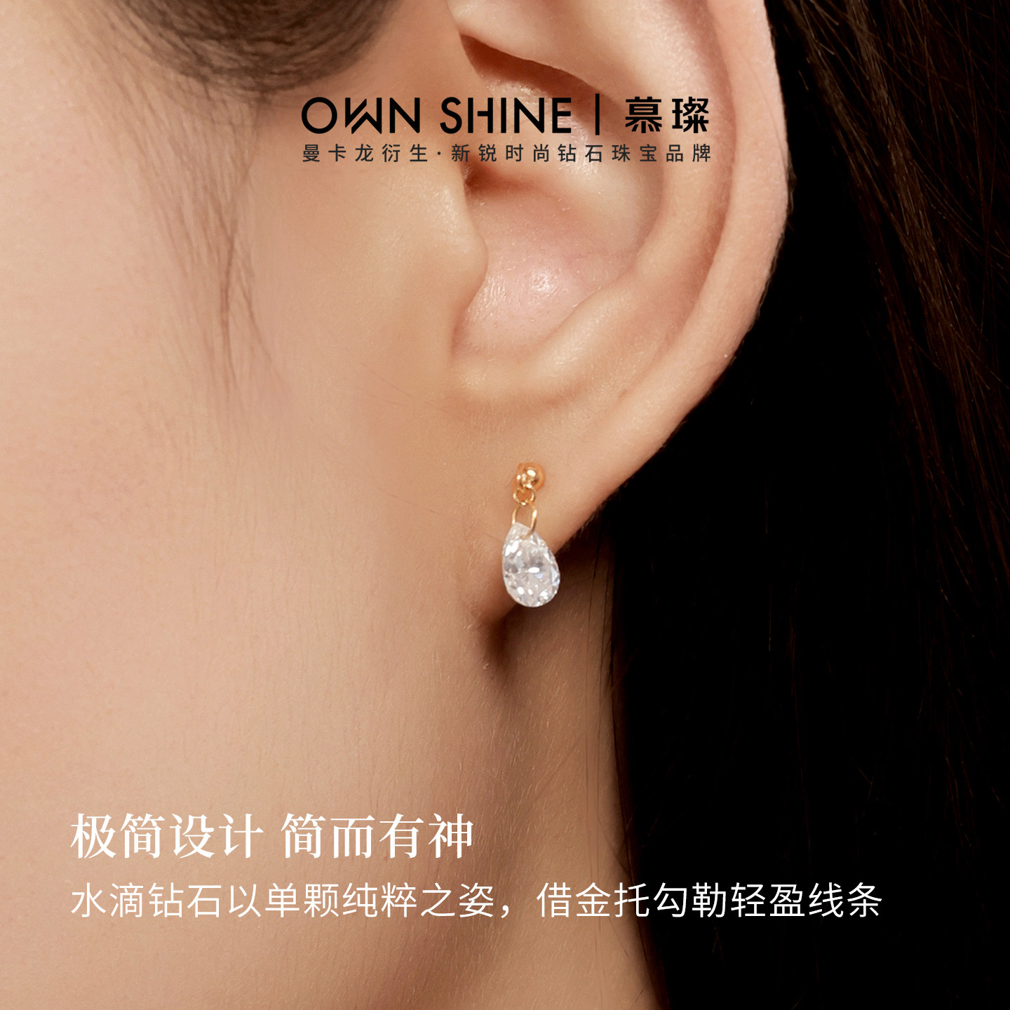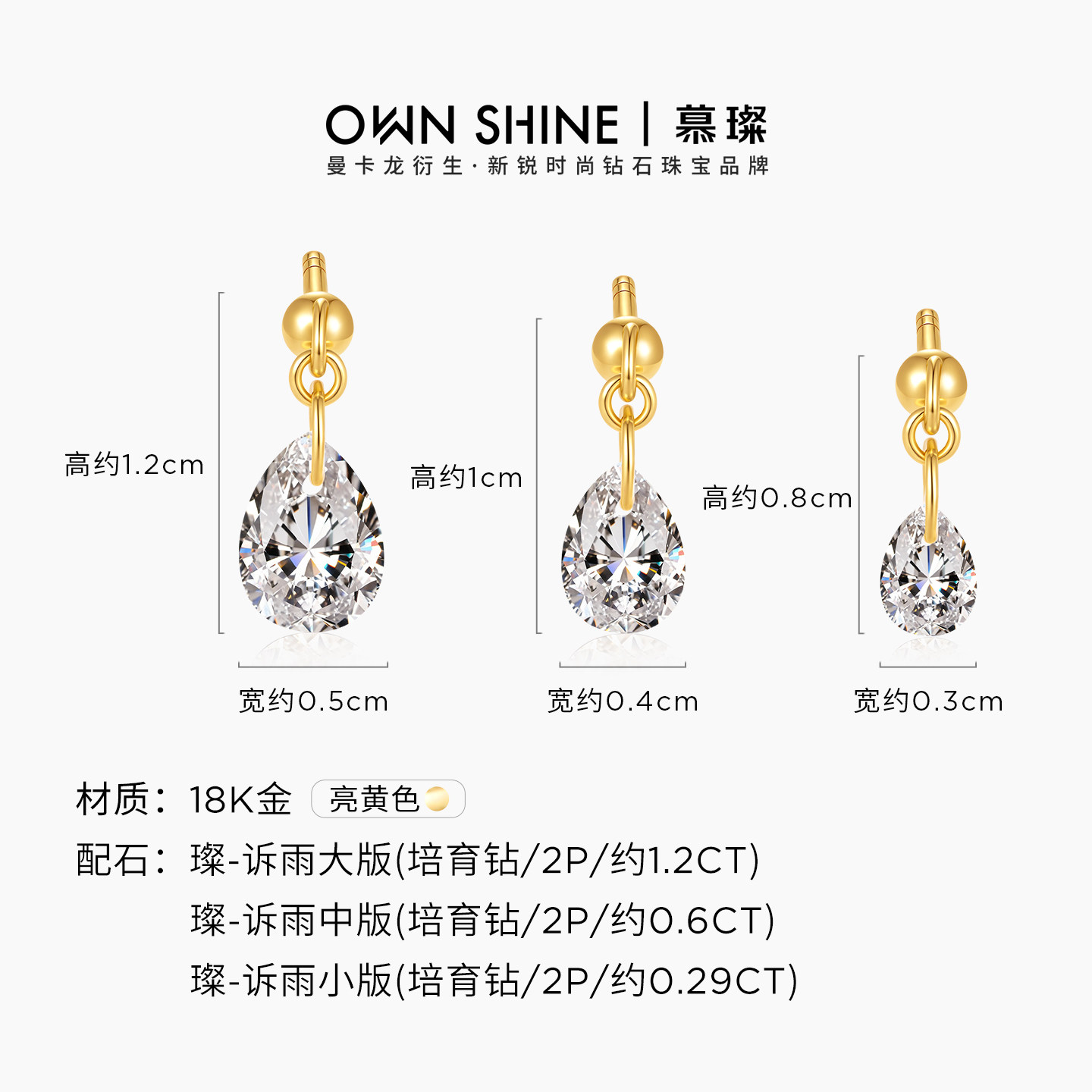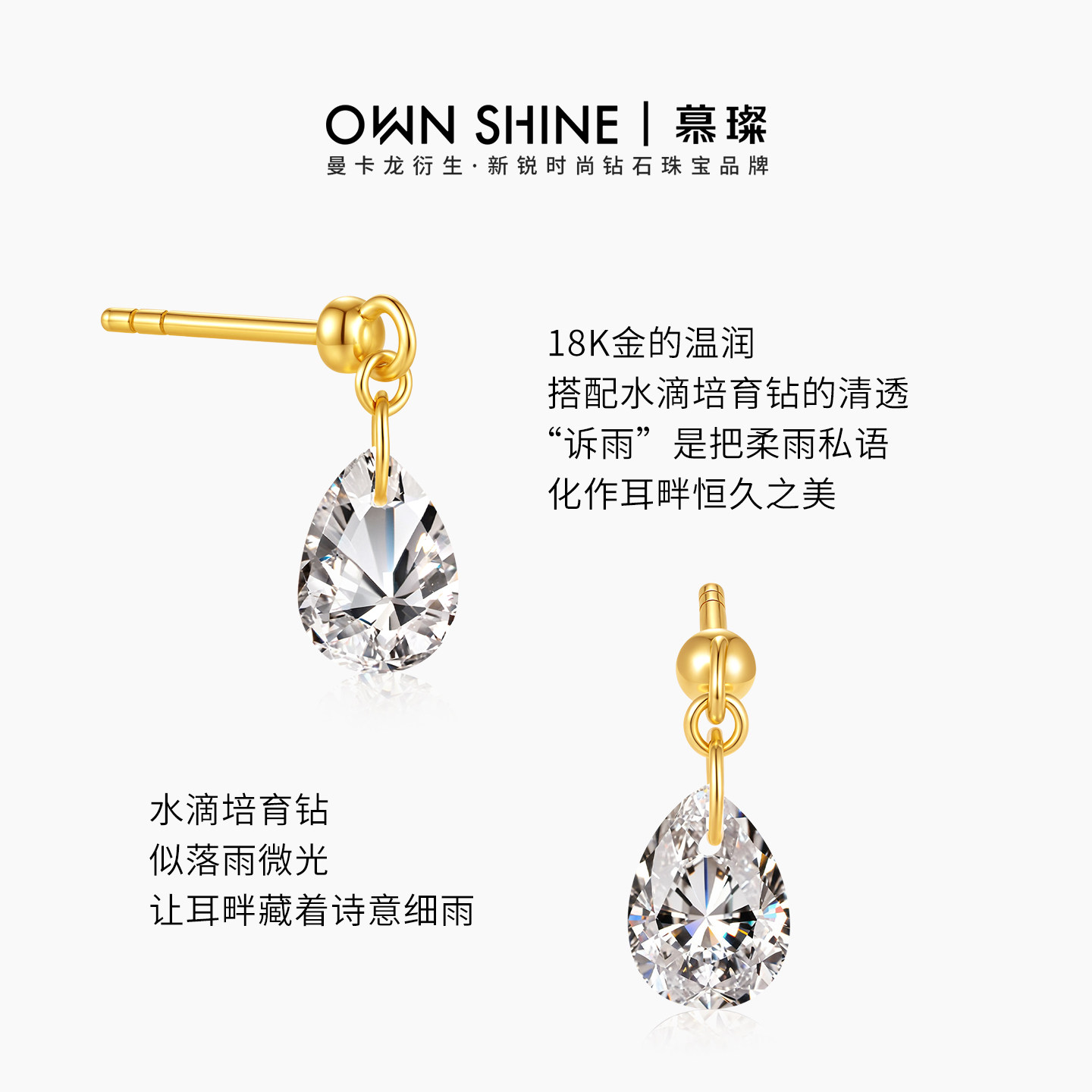 【官方正品】曼卡龙/慕璨诉雨18k黄金耳钉水滴耳环60分耳饰培育钻