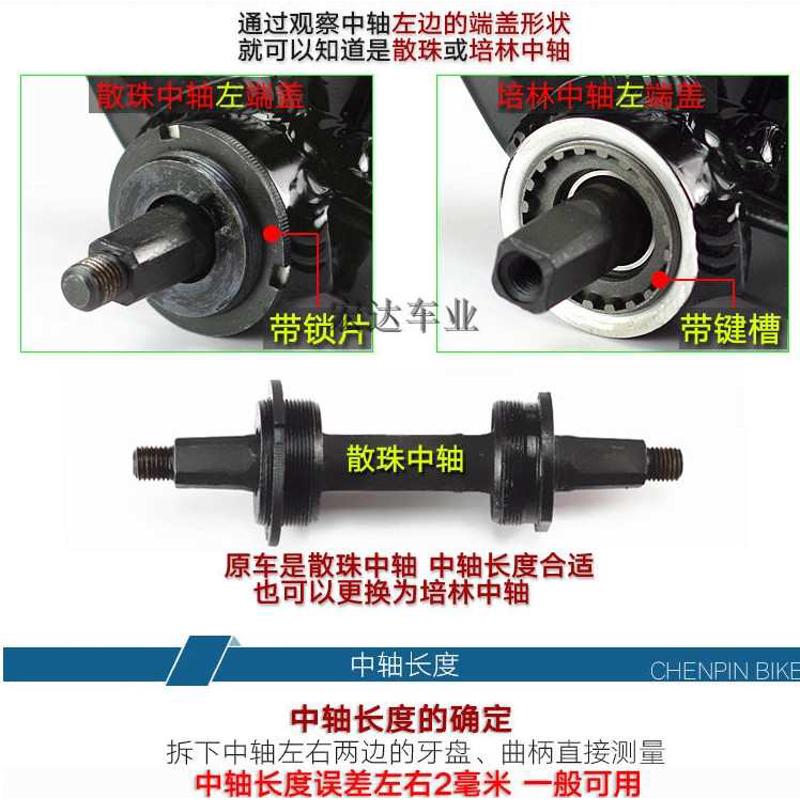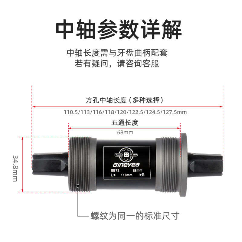 景晔方孔培林轴承中轴山地车自行车牙盘中轴密封一体车轴五通68mm