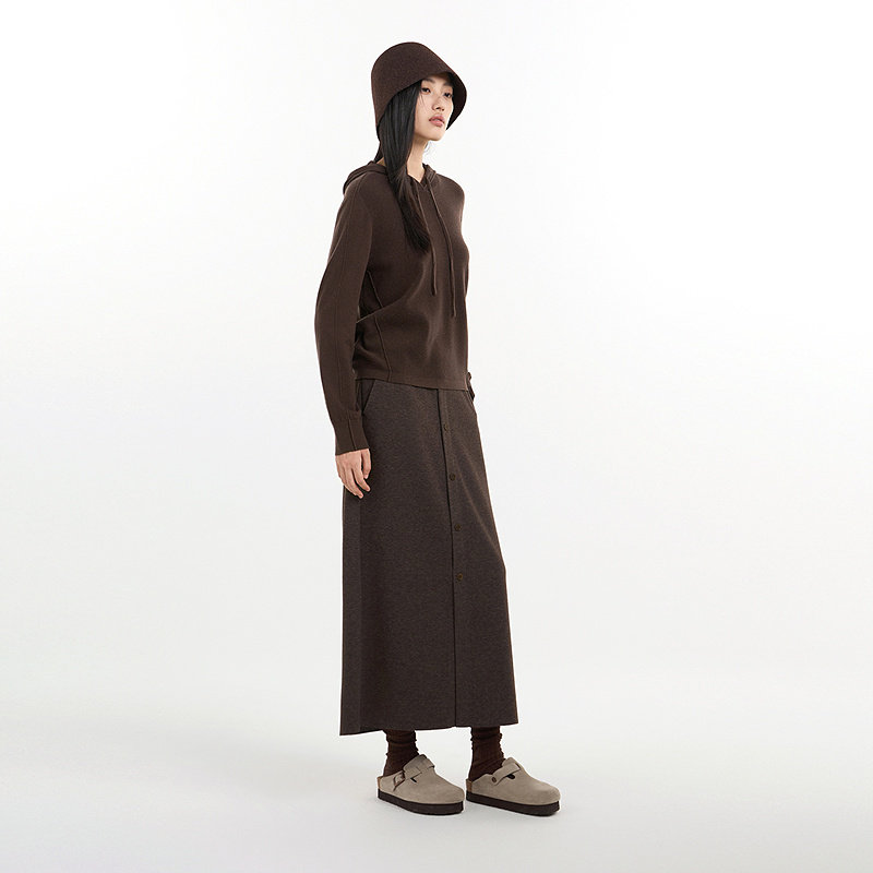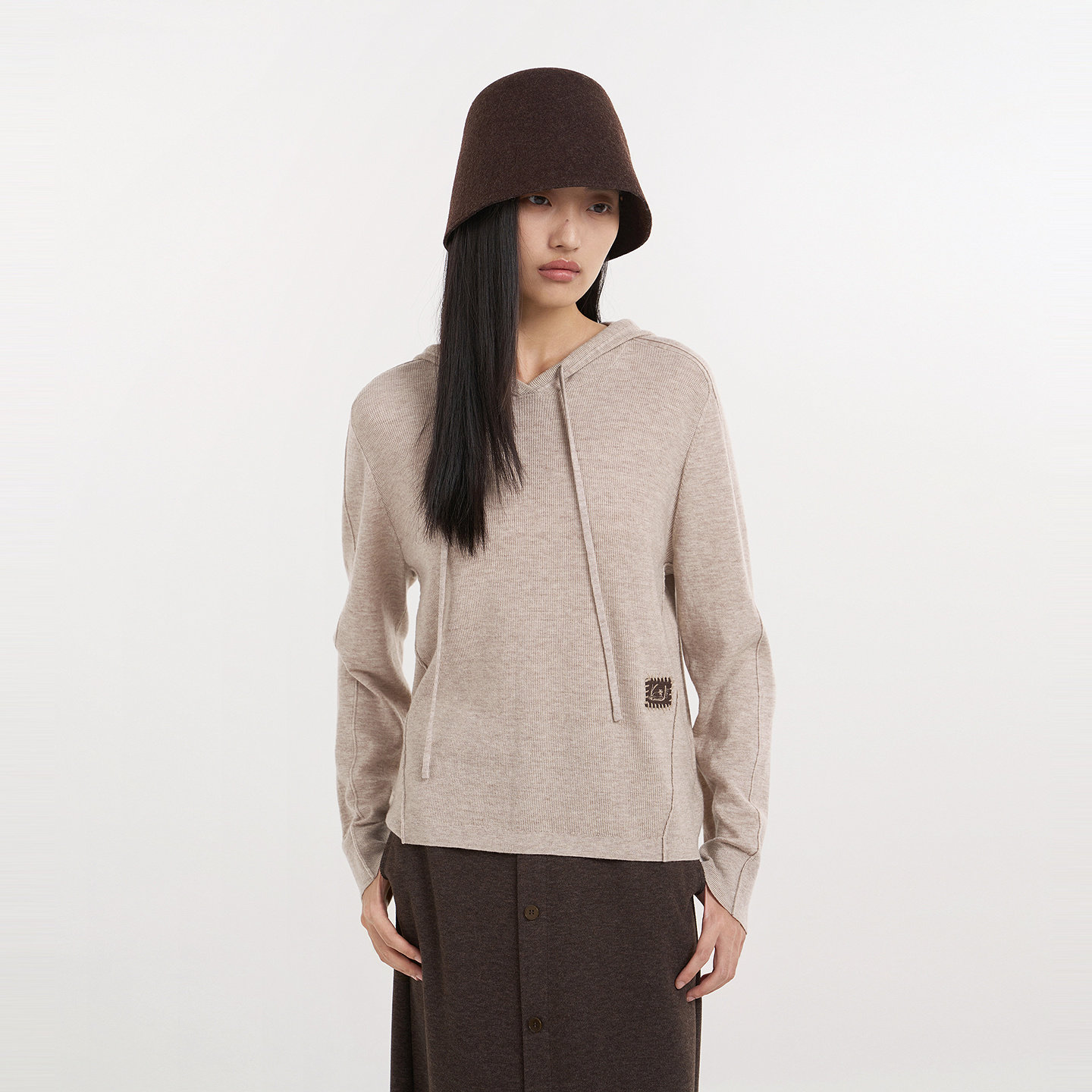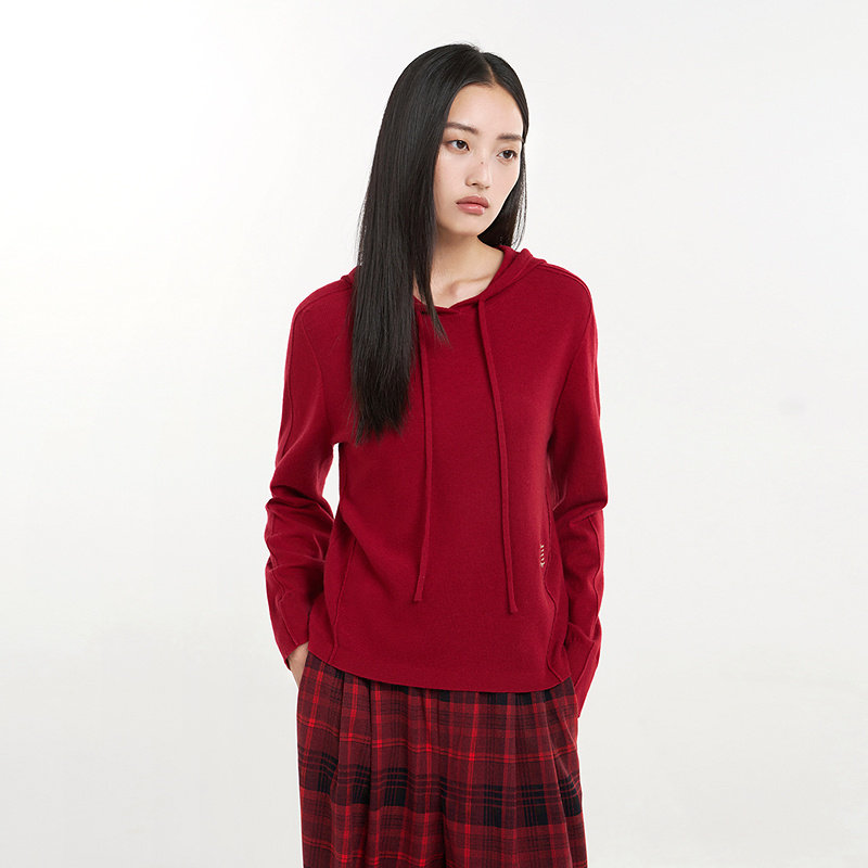[专柜同款]Yifini/易菲羊毛混纺百搭连帽休闲针织卫衣女时尚上衣